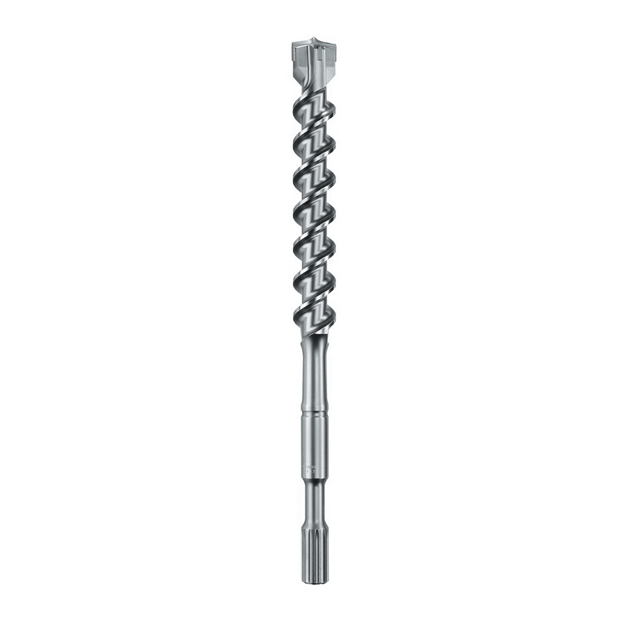 - Large volume double spiral flutes provide rapid dust removal further enhancing bit life and drilling speed