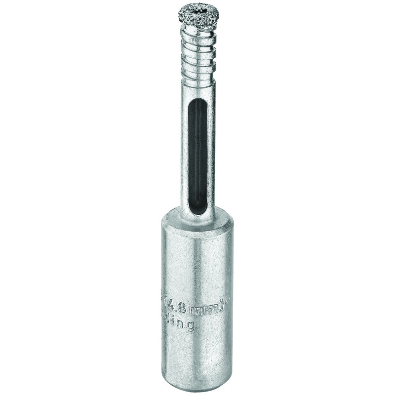 The DeWalt® 3/16 in diamond drill bit performs according to your standards so you never have to worry about being let down by an important tool. This bit is diamond welded for durability and a reverse spiral thread delivers continuous water speed, increasing the life of the bit and maximizing speed and efficiency on the job. For large, repetitious projects, a core ejection slot removes plugs, saving you time and energy. This bit is perfect for kitchen and bath installation, residential and commercial plumbing and a range of other applications.