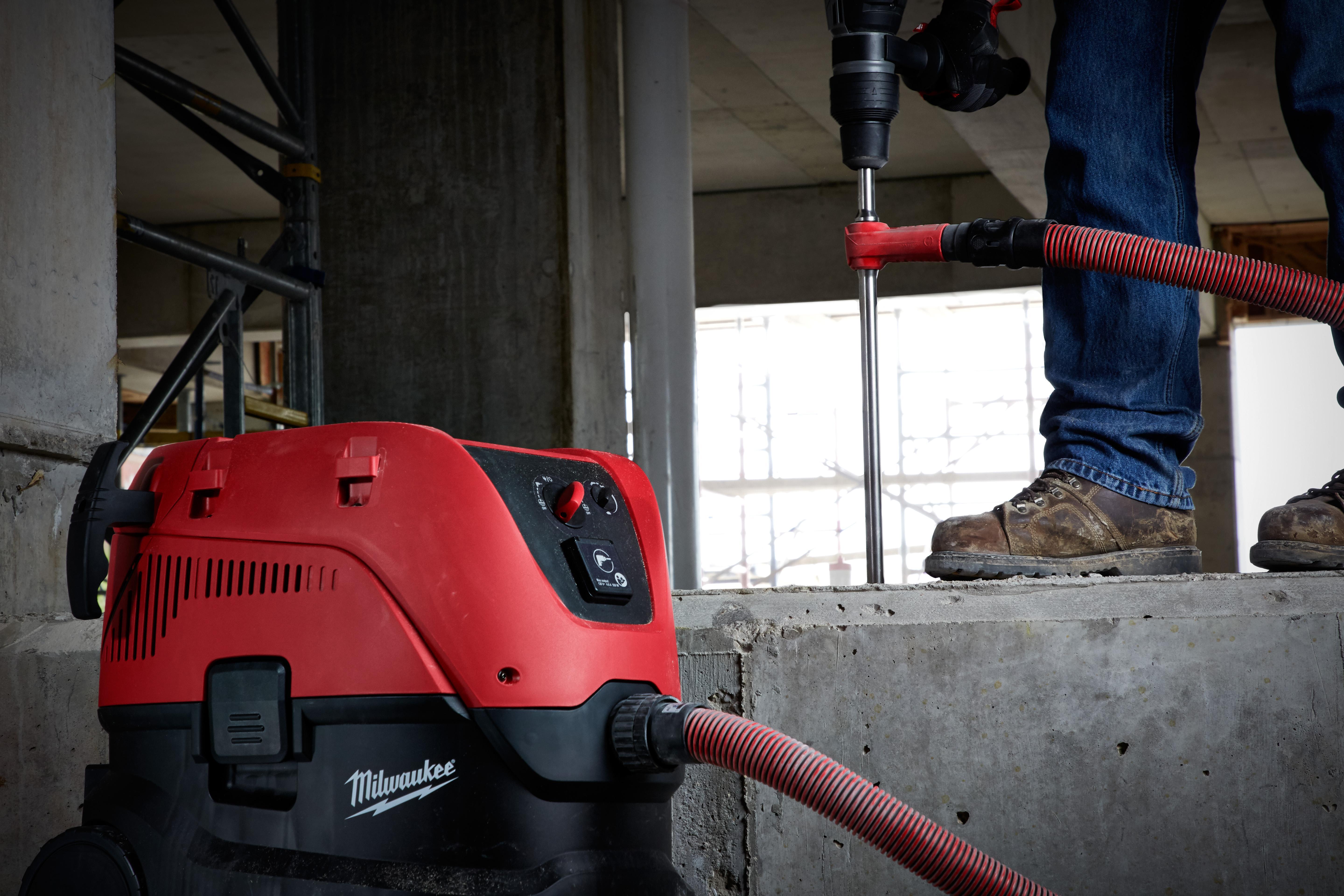 The Milwaukee® vacuum drill bits reduce airborne silica dust and provide increased productivity during the chemical anchor preparation process. The combination of dust extraction holes at the bit tip and the hollow shaft design allow dust to be removed through the bit while drilling holes, reducing airborne silica dust in the process. Milwaukee® Vacuum drill bits are an OSHA table 1 compliant solution when used with dust extraction vacuums. Additionally, vacuum drill bits leave clean holes which are ready for the chemical anchor installation, removing the need to use standard drill bits with the blow-brush-blow cleaning method, delivering up to 2x faster chemical anchor preparation. The 4-cutter tip designs delivers durability in concrete and concrete with rebar applications. The universal adapter fits most common dust extractor attachments.