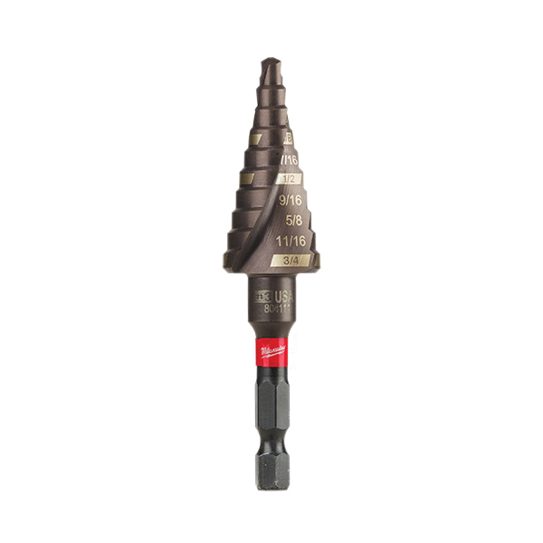 Milwaukee’s SHOCKWAVE™ Impact Duty™ step bits are engineered to deliver the most durable and fastest holes in the market. Made in the USA with global materials, these step bits have best-in-class performance in impact drivers and the versatility to be used in drills. The 1/4 in. hex shank with an optimized Shockzone™ provide the industry’s most durable shank, reducing early shank breaks. A titanium aluminum nitride (TiBone) coating helps deliver 5x longer life, while the Rapid Strike™ tip and dual spiral flute produces 2x faster holes.