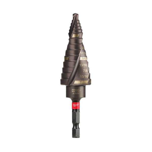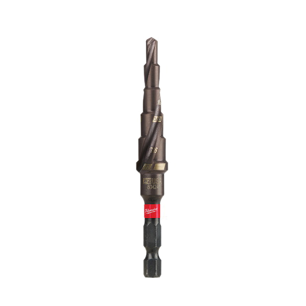 Milwaukee’s SHOCKWAVE™ Impact Duty™ step bits are engineered to deliver the most durable and fastest holes in the market. Made in the USA with global materials, these step bits have best-in-class performance in impact drivers and the versatility to be used in drills. The 1/4 in. hex shank with an optimized Shockzone™ provide the industry’s most durable shank, reducing early shank breaks. A titanium aluminum nitride (TiBone) coating helps deliver 5x longer life, while the Rapid Strike™ tip and dual spiral flute produces 2x faster holes.