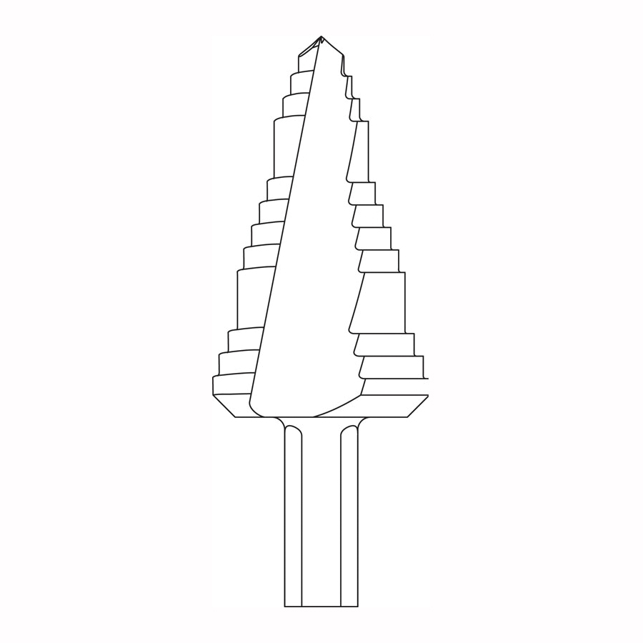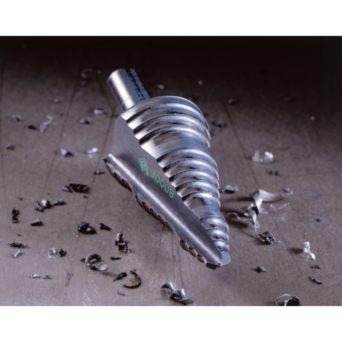Greenlee® Kwik Stepper® 30008 Multi-Hole Step Bit, 1/2 in Dia Min Hole, 1-1/8 in Dia Max Hole, 3 Steps, Steel, 3 Hole Sizes, 3/8 in Shank