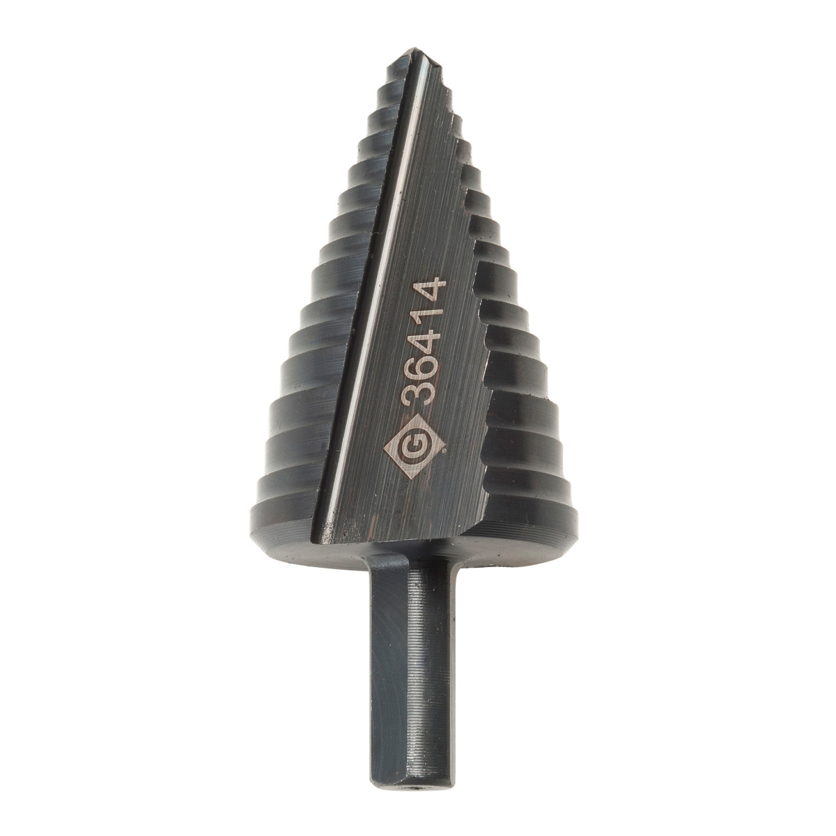 Greenlee® Kwik Stepper® 36414 Multi-Hole Step Bit, 7/8 in Dia Min Hole, 1-3/8 in Dia Max Hole, 6 Steps, Steel, 6 Hole Sizes, 3/8 in Shank