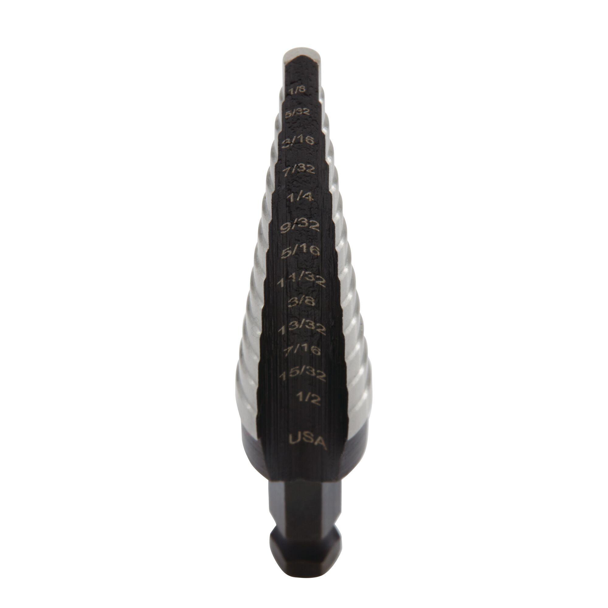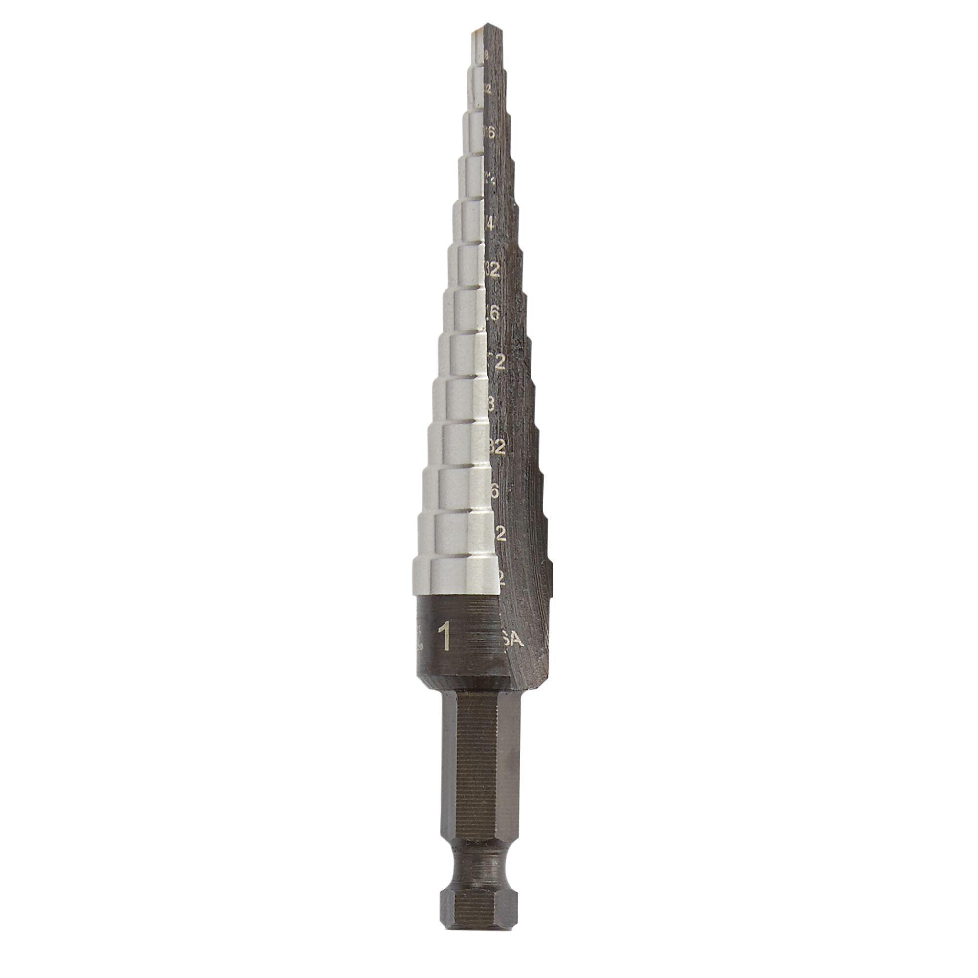 Irwin® UNIBIT® 10231 Self-Starting Step Drill Bit, 1/8 in Dia Min Hole, 1/2 in Dia Max Hole, 13 Steps, High Speed Steel, 1 Hole Size, 1/4 in Shank
