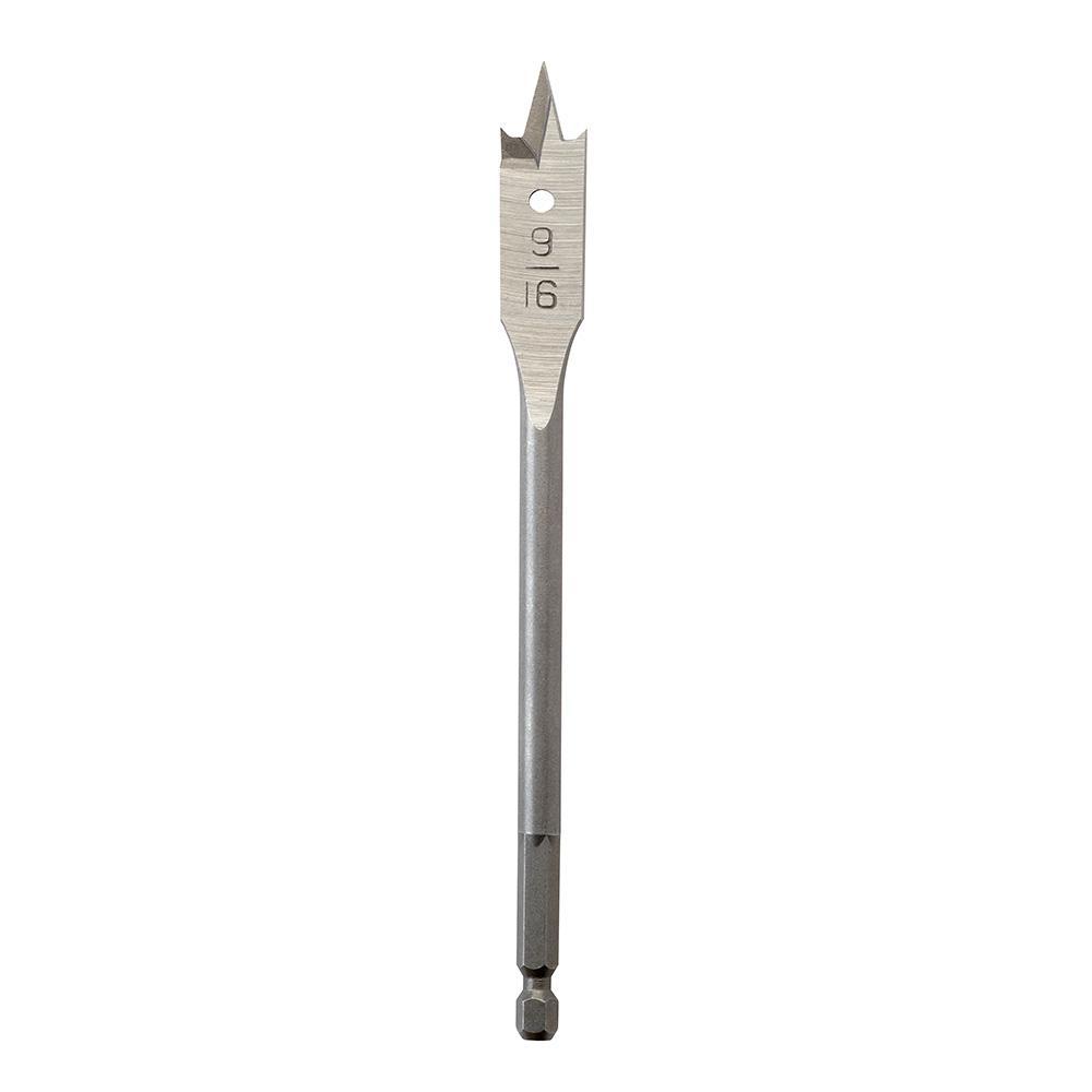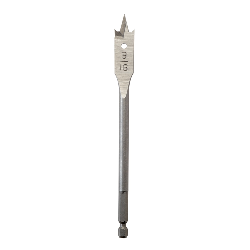 Bore small, clean holes at any angle in a variety of materials with the economical Milwaukee® 9/16 in. x 6 in. flat boring bit. This premium quality flat boring bit is made of heat-treated high carbon steel, so the drill point and cutting edge can be resharpened for cost savings and long life. Bore clean, fast holes at any angle in wood, plastic, plywood and Formica. This bit offers a 6 in. drilling depth but can be used with a 12 in. extension (48-28-3350) for extended deep-hole drilling. 3/16 in. shank diameter.