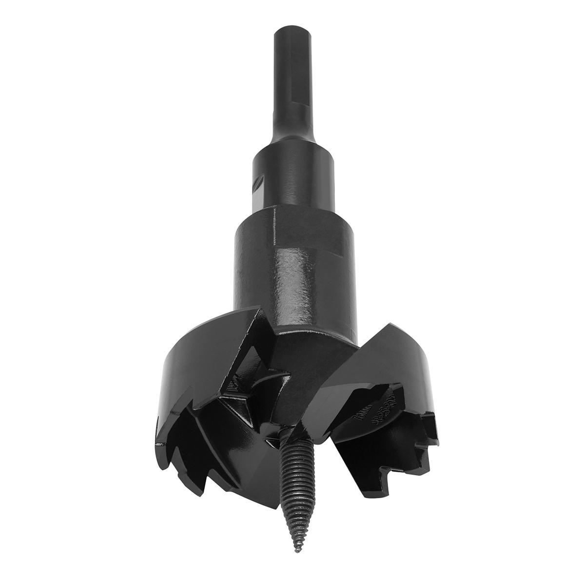 - Faster, more accurate drilling, Center feed screw pilots the bit and allows the bit to pull through fast
