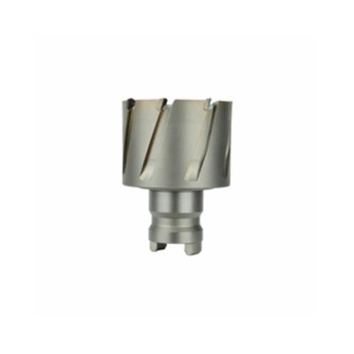 Drill holes up to 3X faster and enjoy fast change-outs with the Milwaukee® 1-11/16 in. quick change tang drive Steel Hawg® cutter. This long-lasting cutter features Carbide teeth and an alternating cutting pattern to cut up to a 1 in. hole depth in steel, stainless steel, cast iron or aluminum. It leaves a ream-like finish without pre-punching or pilot holes. The Steel Hawg cutter works with most electromagnetic drill presses. Use it with arbor 49-57-0012 or 49-57-0013 on Milwaukee's 4292-1 or 4297-1 magnetic drill press or arbor 49-57-0032 on Milwaukee's 4262-1 mag press.