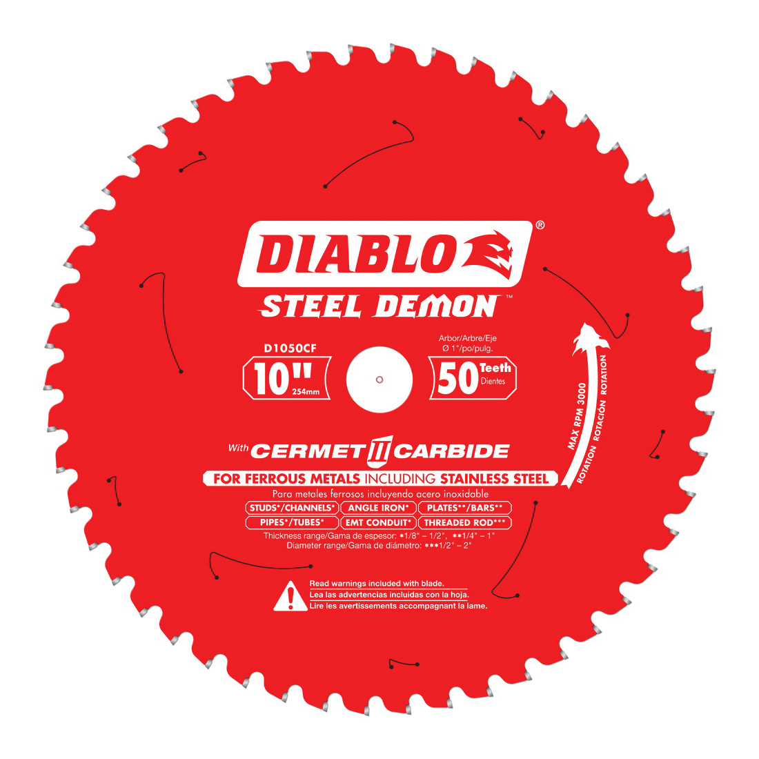 Diablo® D1050CF Steel Demon® Circular Saw Blade, 10 in Dia x 0.071 in THK, 1 in Arbor, Carbide Blade, 50 Teeth