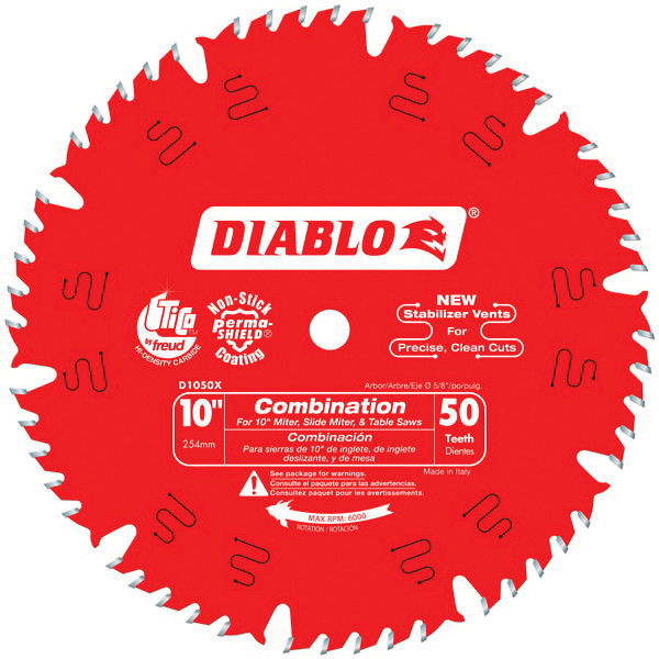 Diablo® D1050X Combination Circular Saw Blade, 10 in Dia x 0.071 in THK, 5/8 in Arbor, 50 Teeth