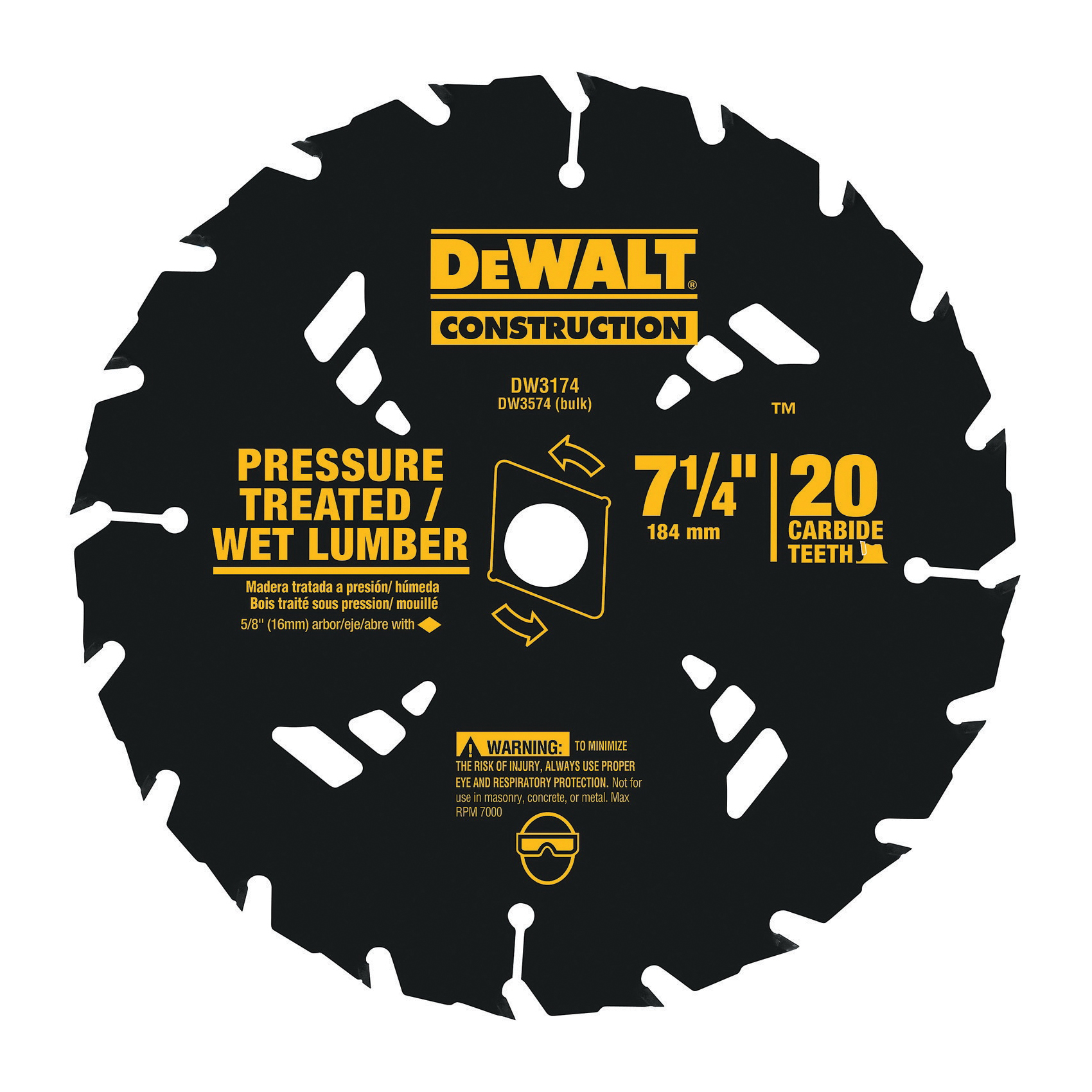 Black+Decker® DW3174 20™ Portable Pressure Treated Round Arbor Circular Saw Blade, 7-1/4 in Dia x 0.045 in THK, 5/8 in Arbor, Steel Blade, 20 Teeth