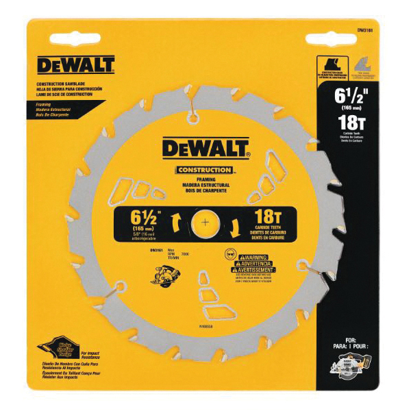 Featuring tungsten carbide teeth for maximum durability and a thin kerf for fast, smooth cuts, DeWALT® small diameter Construction™ saw blades power through a variety of building materials with ease. Ribbed heat vents allow blades to run at cooler temperatures, reducing blade flexing and binding. anti-stick coating minimizes friction and gum-up.