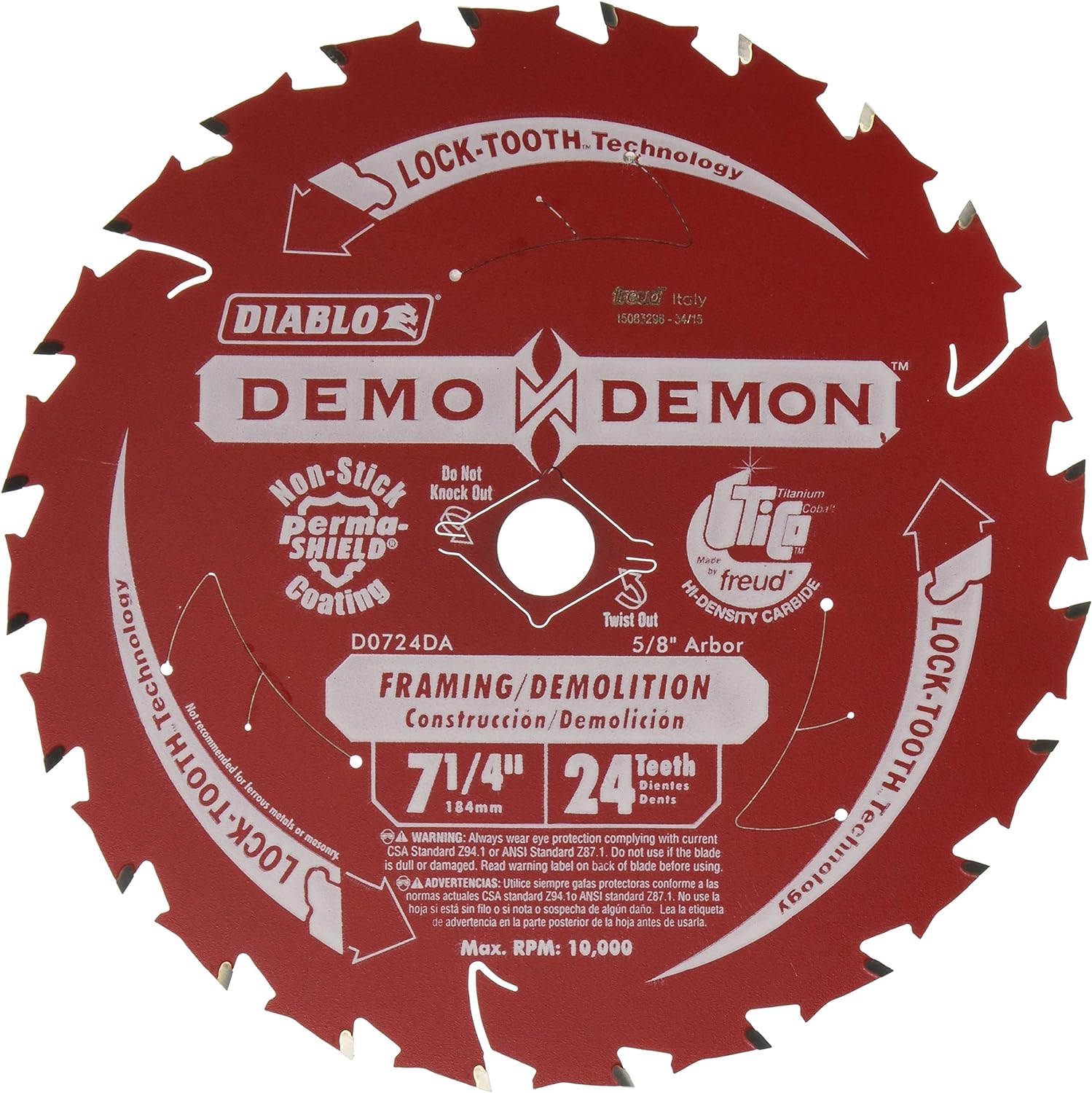 Diablo® D0724DA Diamond Knockout Circular Saw Blade, 7-1/4 in Dia x 0.04 in THK, 5/8 in Arbor, Carbide Blade, 24 Teeth