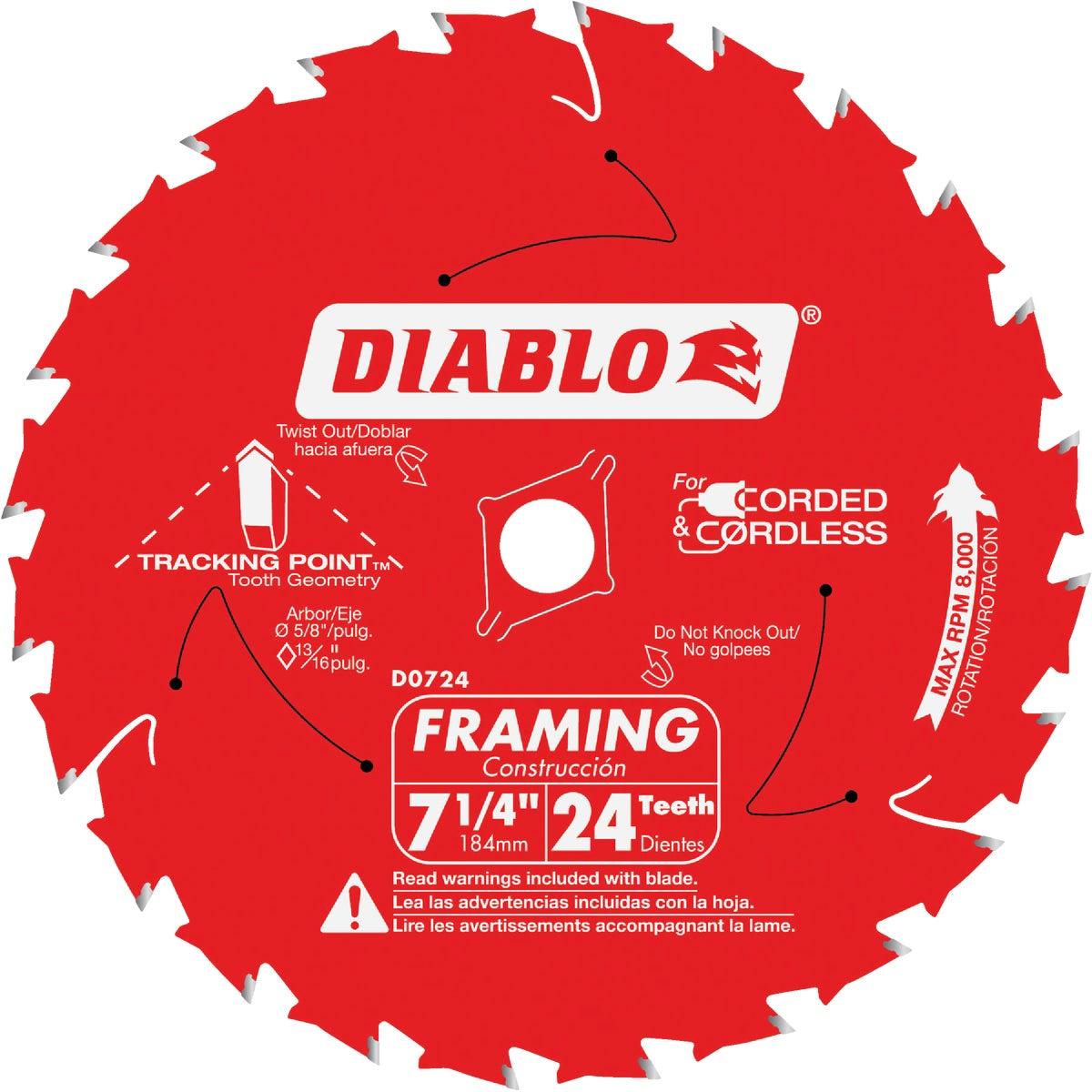 Diablo® D0724A Combination Diamond Knockout Laser Cut Circular Saw Blade, 7-1/4 in Dia x 0.04 in THK, 5/8 in Arbor, Carbide Blade, 24 Teeth