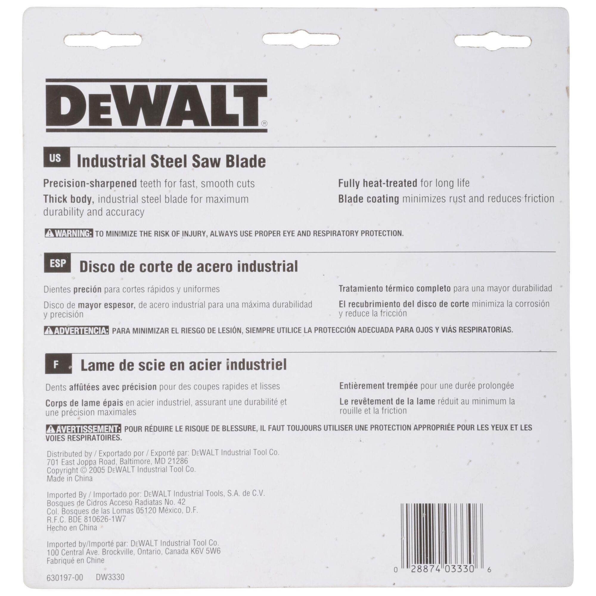 The DEWALT 7-1/4 In. Steel Saw Blade was painstakingly designed to provide the highest possible cut quality over an extended lifespan, so you never have to sacrifice quality or durability. With precision sharpened teeth, each cut is fast and smooth, no matter what the cutting application. A thick body increases durability even in heavy-duty applications, and the specialized blade coating prevents rust and reduces friction, allowing you to focus on the cut and not on the blade. With a fully hardened steel body, this DEWALT blade is built to last without warping or binding, so you can always work confidently.