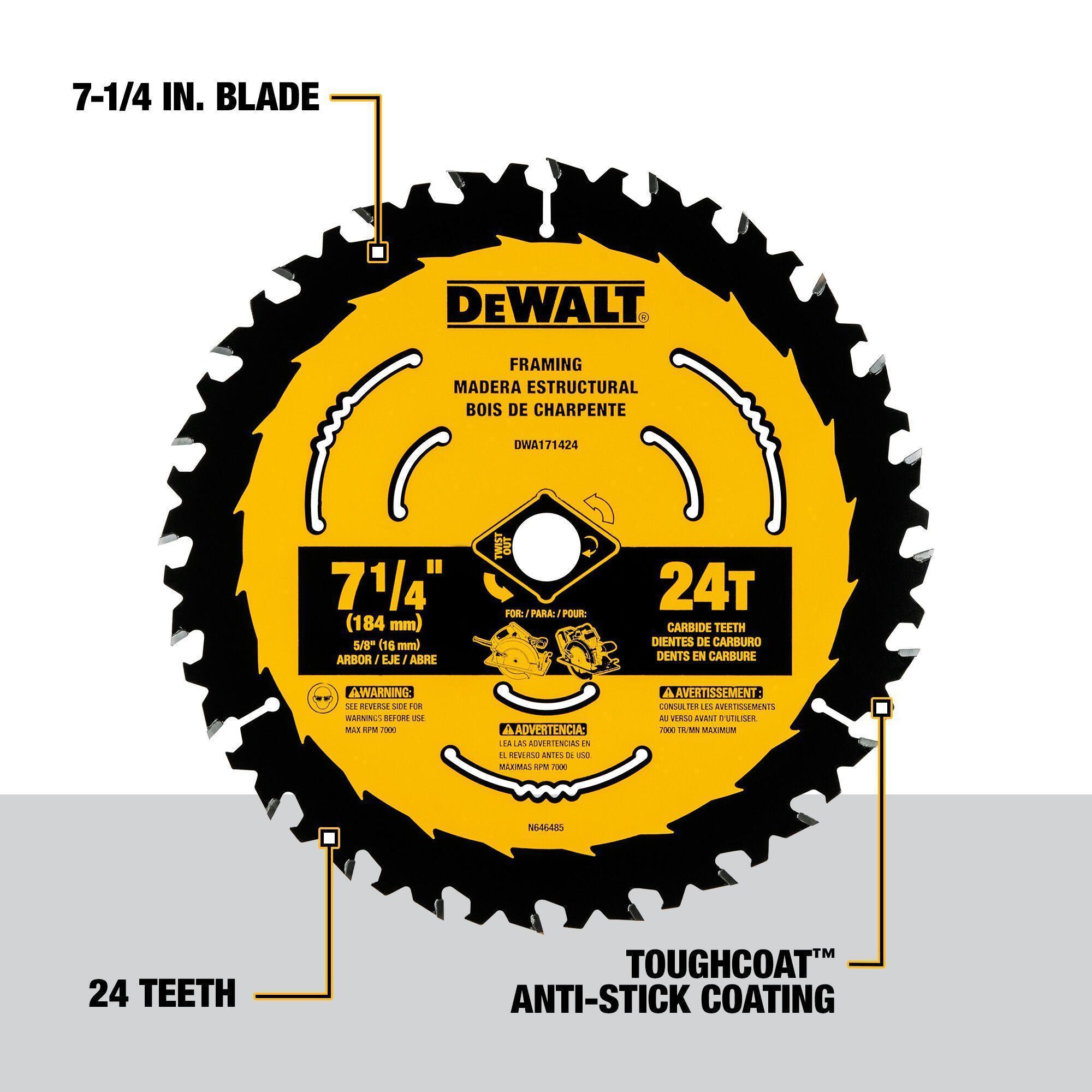 DeWALT® DWA1714243L Dry Cut Only Circular Saw Blade, 7-1/4 in Dia, 5/8 in Arbor, Steel Blade, 24 Teeth