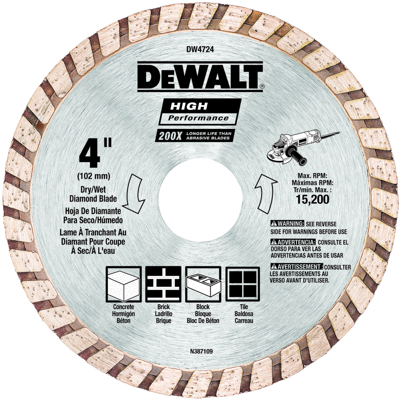 DeWALT® High Performance™ DW4724 Turbo Diamond Saw Blade, 4 in Dia Blade, 1 in D Cutting, 5/8 in, 7/8 in, 20 mm Arbor/Shank, Dry/Dry Cutting
