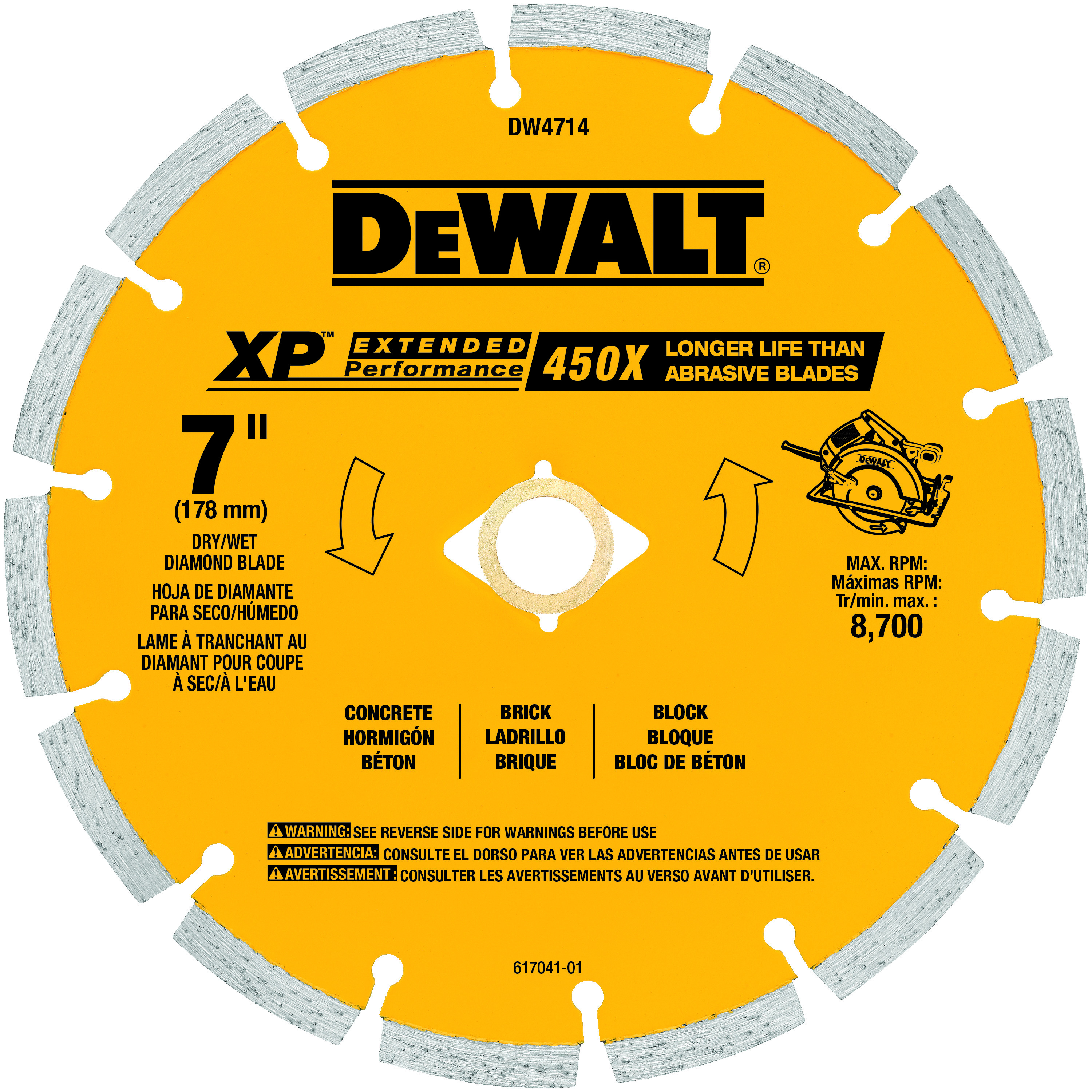 DeWALT® XP® DW4714 Segmented Diamond Saw Blade, 7 in Dia Blade, 2-1/4 in D Cutting, 5/8 in, 7/8 in Arbor/Shank, Dry/Fast Cutting