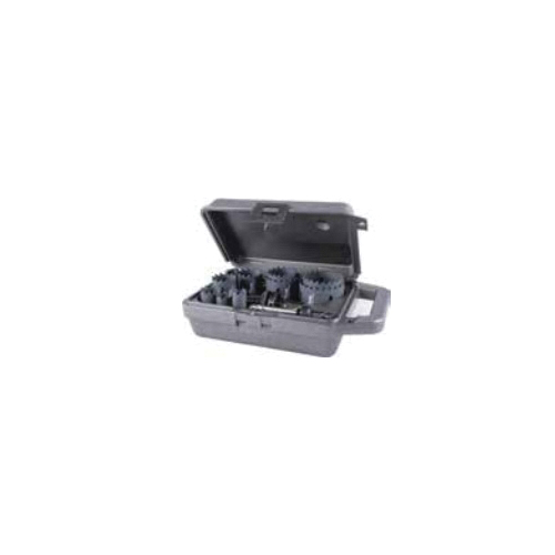 Morse MHSTK100 (131001), 12 piece, general utility hole saw kit contains carbide tipped hole saw diameters more propular for common applications. Cut fiberglass, wood, stainless steel, aluminum and composites or laminates. Not recommended for pipe cutting. Kit includes 3/4", 7/8", 1-1/8", 1-3/8", 1-1/2", 1-3/4", 2", 2-1/4" and 2-1/2" diameter, carbide tipped hole saws, one (1) MA34CT, 3/8" shank (1/2"-20) standard arbor, one (1) MA45PSCT, 1/2" shank (5/8-18) pin drive arbor, and carrying case.