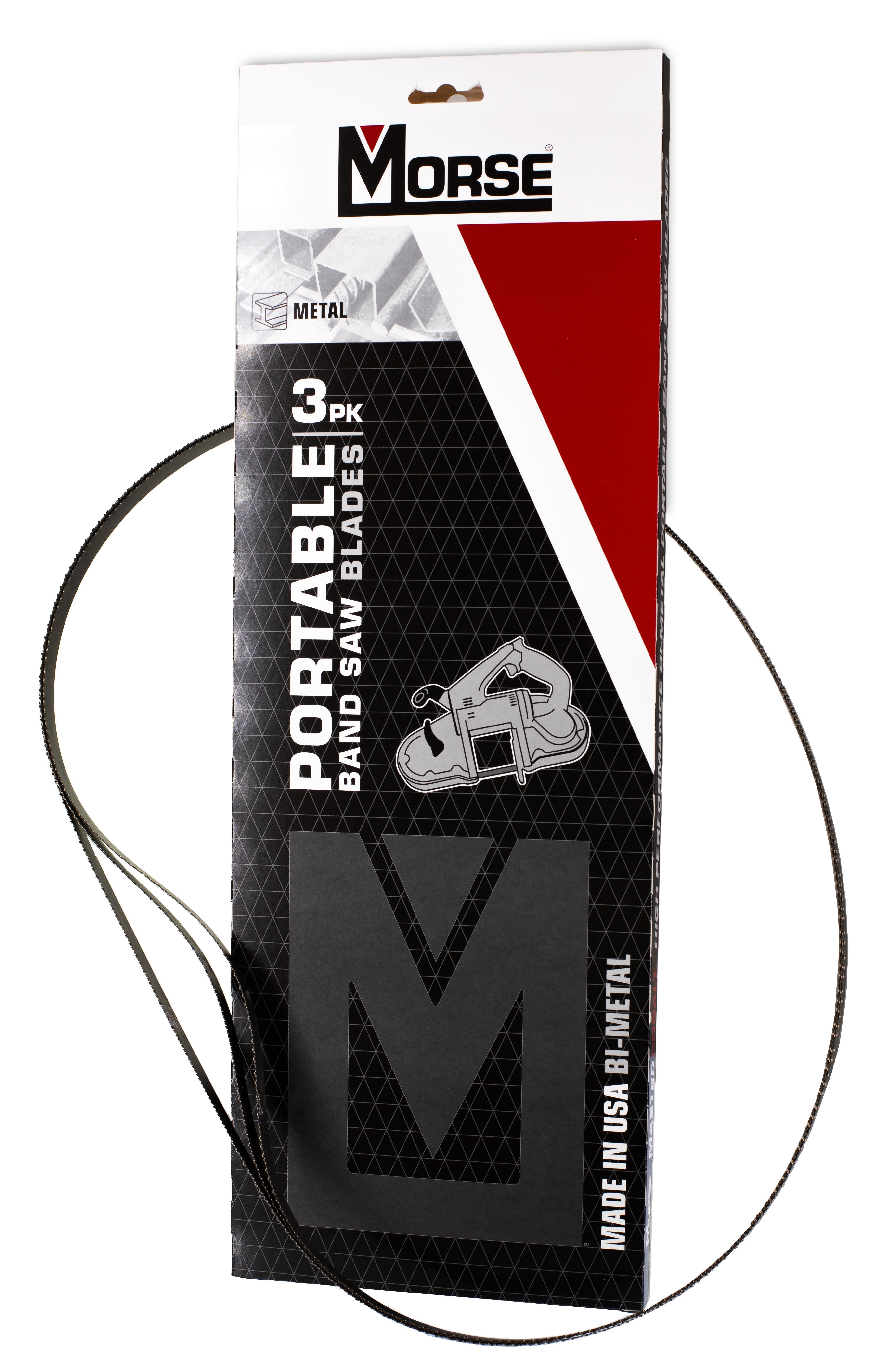 Morse ZWEP44811MC (002486), 44-7/8" x 1/2" x .020", 8/11 variable pitch, bimetal portable band is suitable for cutting any machinable metal, 1/2" or thicker. Patent pending, tooth design reduces vibration and strippage for faster cutting, and longer cutting life. Blades packaged three (3) per box.