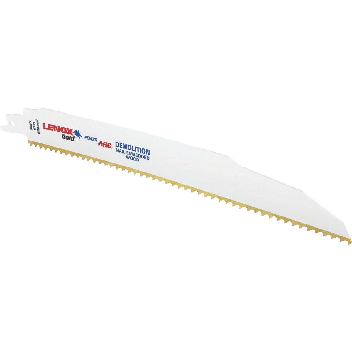 Lenox® Gold® 21090966GR Demolition Reciprocating Saw Blade, 9 in L x 1 in W, 6 TPI, Bi-Metal Body, U-Shank Tang