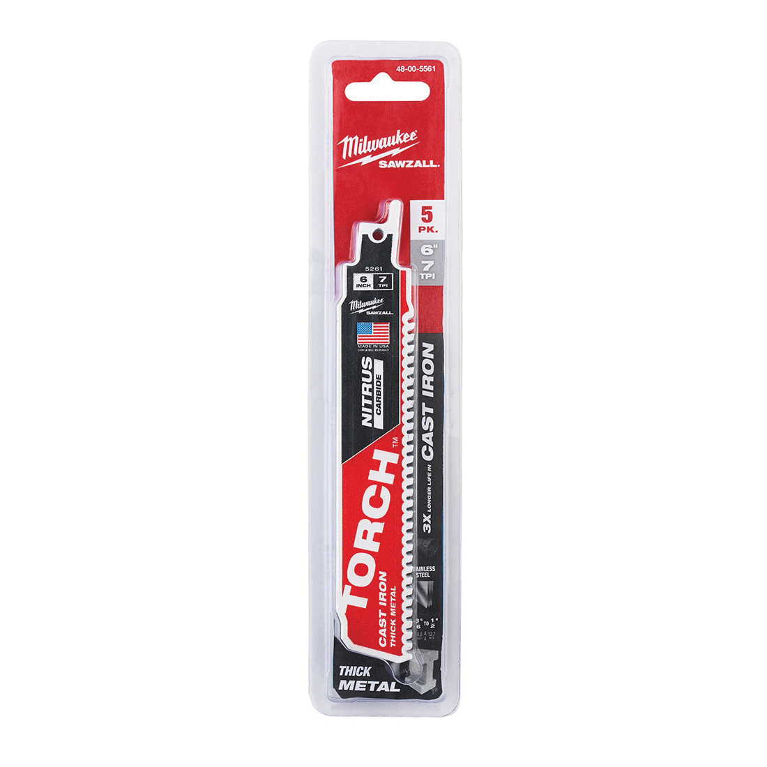 Milwaukee® SAWZALL® TORCH™ 48-00-5561 Saw Blade, 6 in L x 1 in W, 7 TPI, Cast Iron Body, Universal Tang
