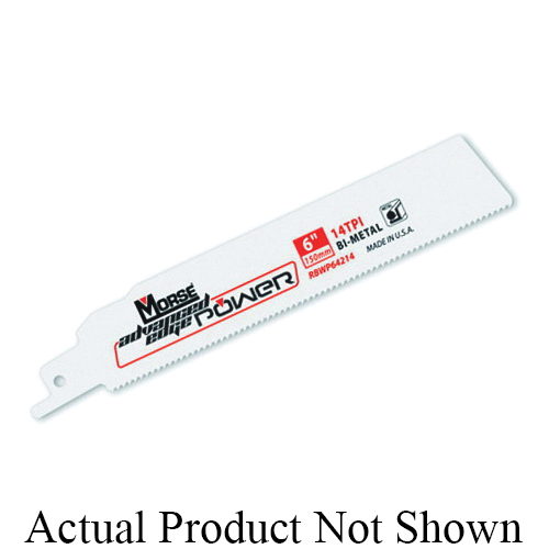 Morse RBWP94218T05 (392105), 9" x 18TPI, bimetal reciprocating saw blade is designed for cutting metal, from 1/8", up to 3/8", thickness. Wider, thicker blade body reduces blade deflection, increases rigidity, under heavier feed pressure. Five (5) blades per pack.
