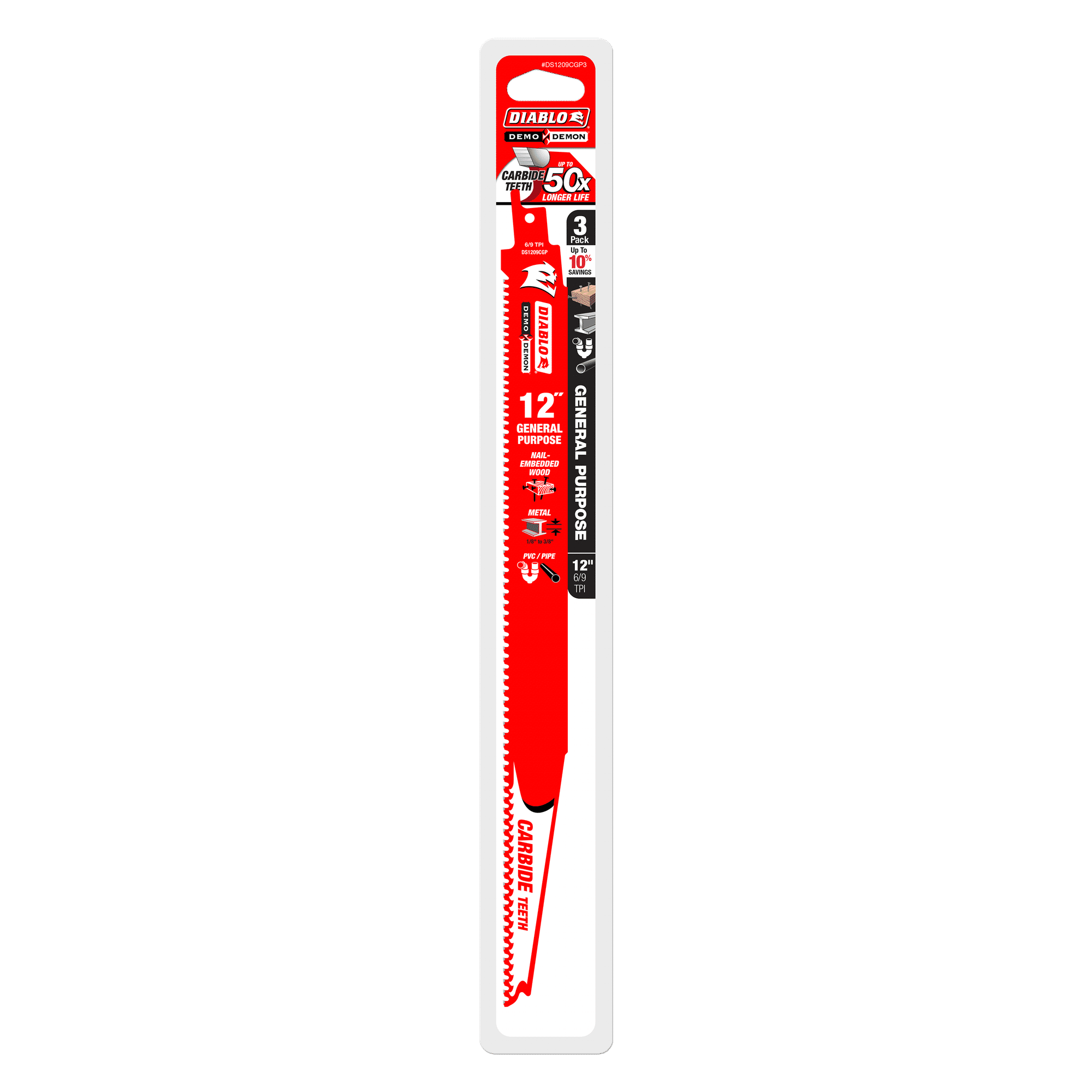 Diablo® DS1209CGP3 Reciprocating Saw Blade, 12 in L, 6, 9 TPI