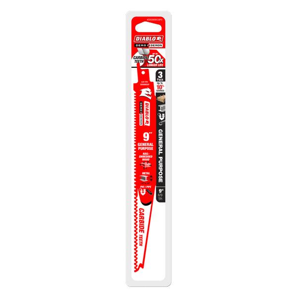Diablo® DS0909CGP3 Reciprocating Saw Blade, 9 in L, 6, 9 TPI