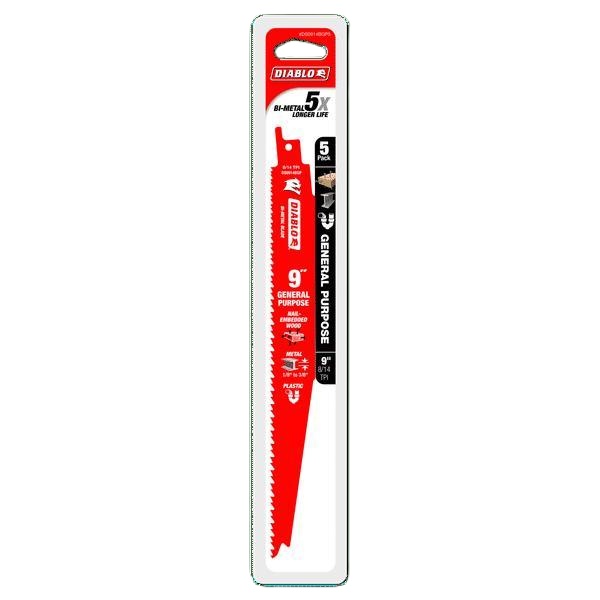 Diablo® DS0914BGP5 Bi-Metal Reciprocating Saw Blade, 9 in L, 8/14 TPI