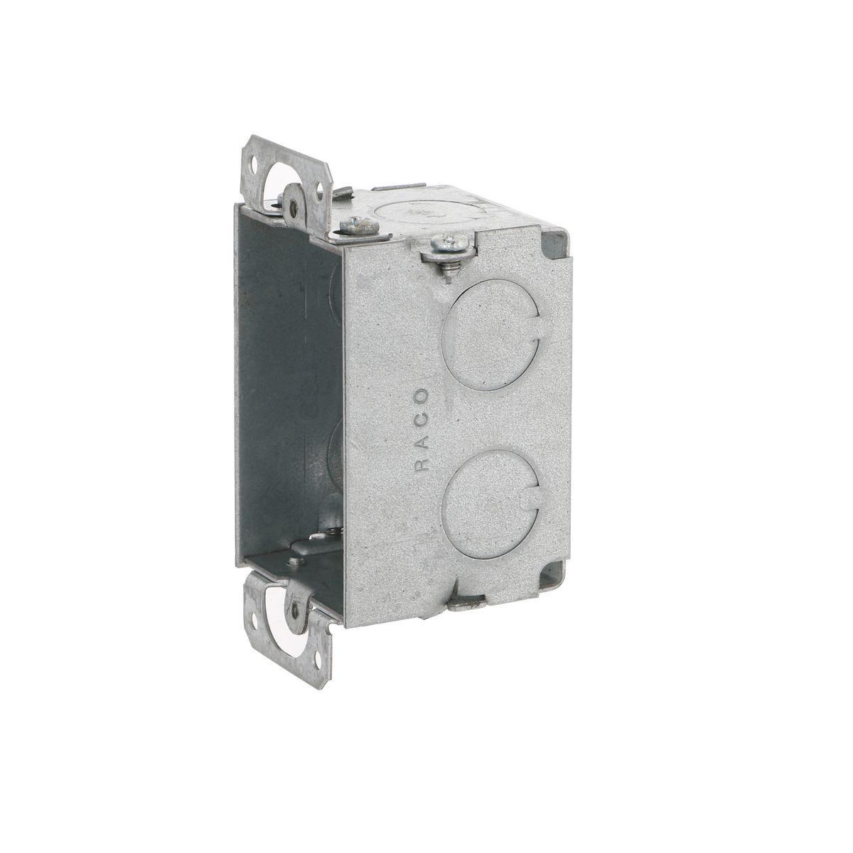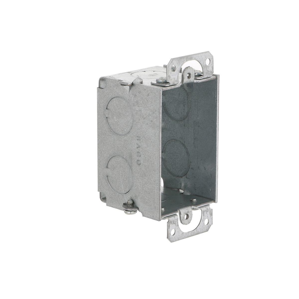 RACO® 400 Gangable Switch Box, Steel, 7.5 cu-in Capacity, 1 Gangs, (1) Outlets, (3) Knockouts, 2 in H x 4.22 in W x 1.5 in D
