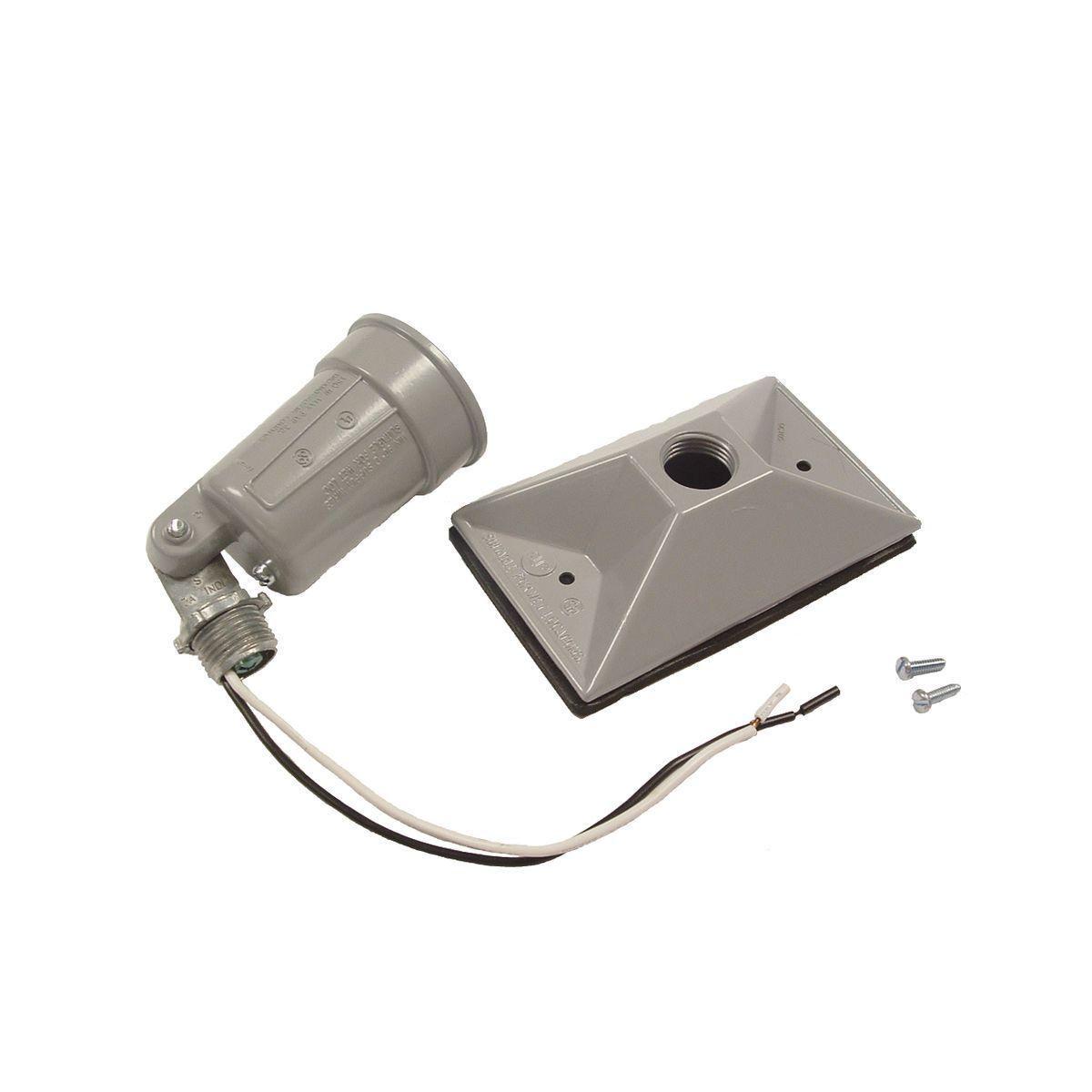 Rectangular Weatherproof Combination Cover for 75-150W Par 38 Lamps, Includes 1 Lampholder, Gasket, and Hardware, Gray, Carded