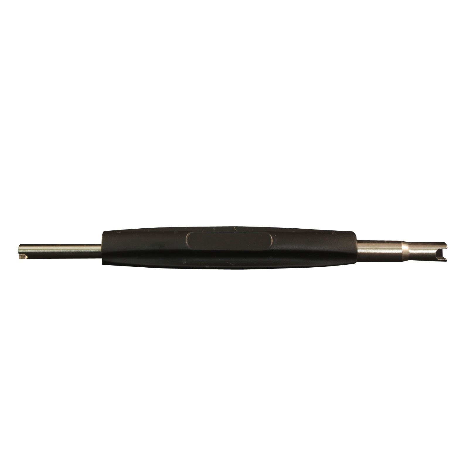 Valve Core Tool is for the removal and insertion of valve cores. One end for is for a standard bore, while one end is for large bore valves. With an overall length of 5 in, this Valve Core Tool has a 3 in handle length.