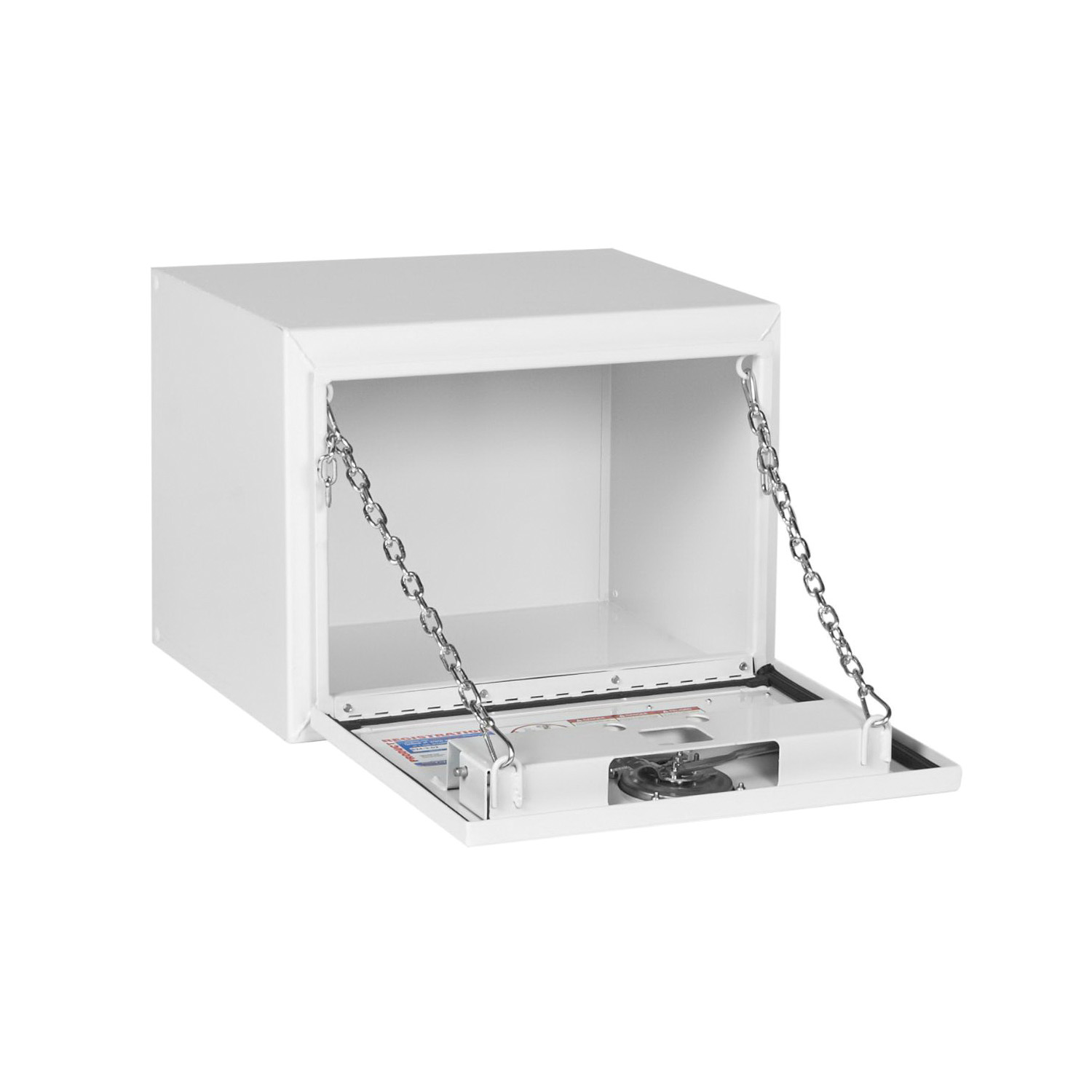 The rugged Underbed storage boxes are designed for heavy duty trucks and semis to keep larger, heavy items and tools secure yet easily accessible. The model 524-3-02 steel standard Underbed box features a brite white Armor-Tuf® powder coat finish that ensures years of dependability and 4.5 cu ft of storage. The model 3-point latching system helps protect against theft and weather.