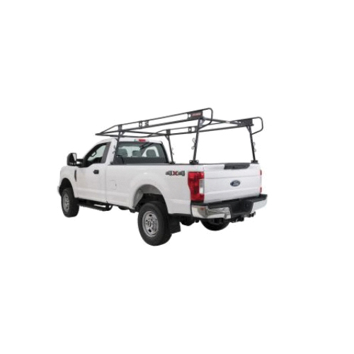 The model 1275-52-02 steel truck rack for full size truck beds securely installs to the bed rail with no drilling required. The 1000lb rated rack is ideal for carrying ladders or long materials to the jobsite and back.