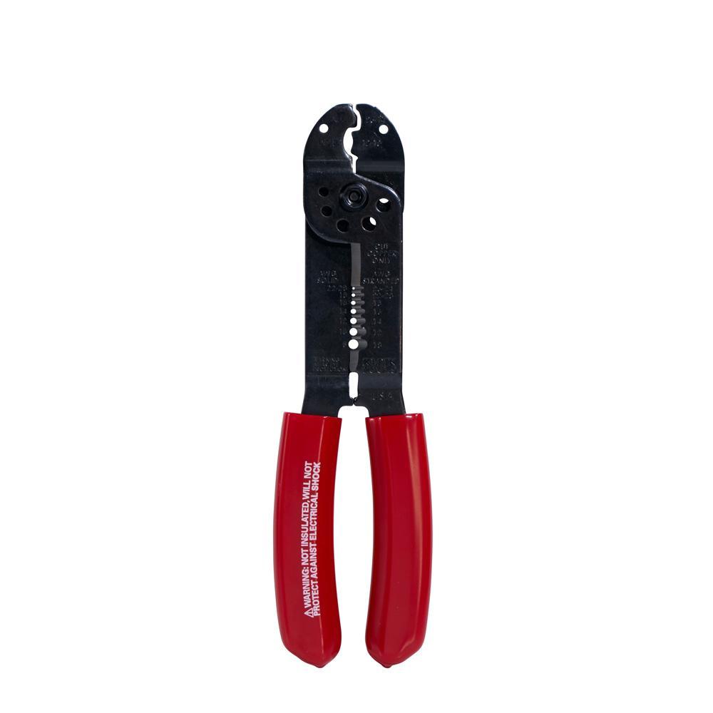 This Multi Tool performs 6 different functions with the same tool. It gauges, cuts and strips wire, measures and shears machine screws and crimps insulated terminals and connectors. Use the threaded holes to easily measure the size of a machine screw and cut it if needed. The plastic-covered handles are cushioned for added comfort.