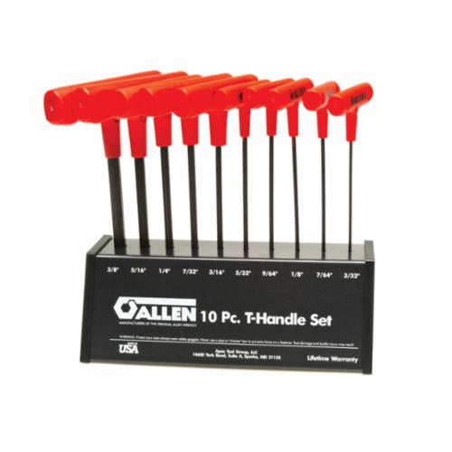 Crescent® 56163 Long Key Set, 10 Pieces, 3/32 to 3/8 in Hex, Cushion T-Handle Handle, Alloy Steel, Black Oxide
