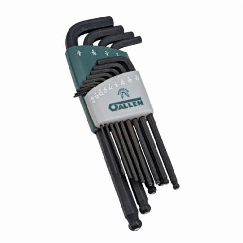 Includes0.05 in, 1/16 in, 5/64 in, 3/32 in, 7/64 in, 1/8 in, 9/64 in, 5/32 in, 3/16 in, 7/32 in, 1/4 in, 5/16 in, 3/8 in Ball-Plus™ Ball Tip Hex Keys and Hinged Caddy