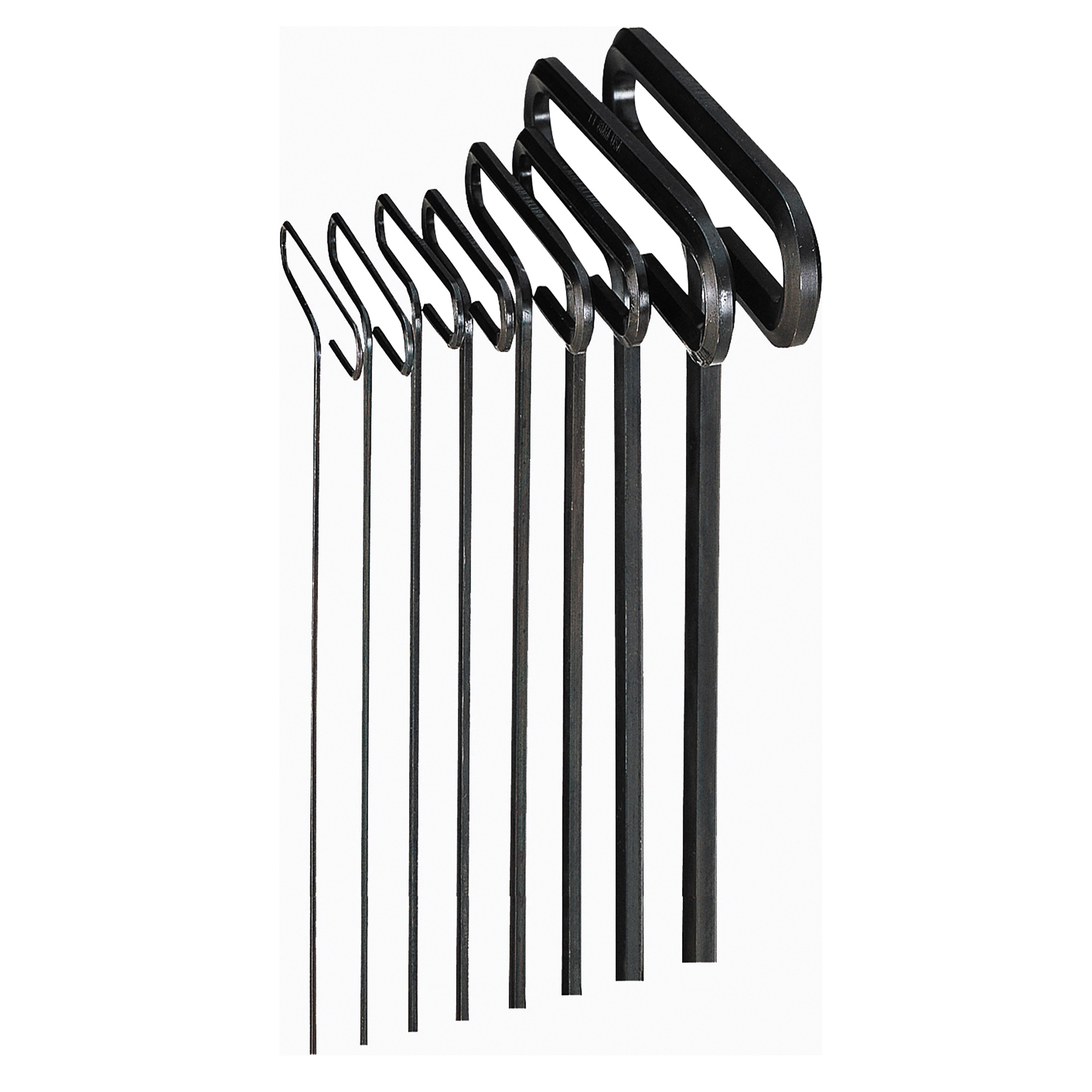 Eklind® 35198 Long Key Set With Holder, 8 Pieces, 2 to 10 mm Hex, Standard Grip/Loop T-Handle Handle, ANSI B18.3, Alloy Steel, Black Oxide