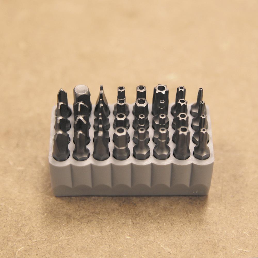 - Block slides over most screwdriver shafts for easy bit access and storage