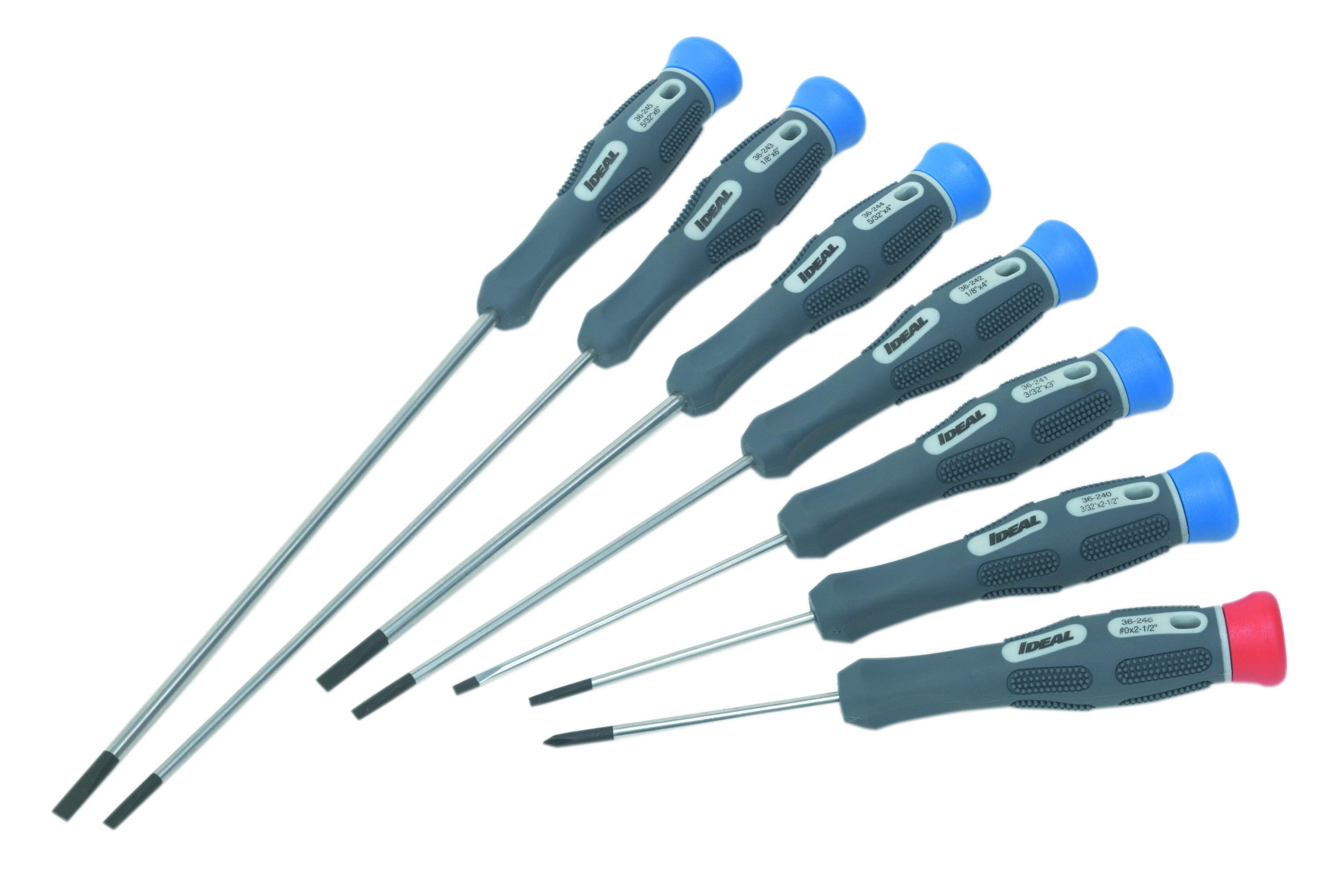 IDEAL® 36-248 Electronic's Screwdriver Set, 7 Pieces, Steel Blade/Vanadium Steel, Polished Chrome