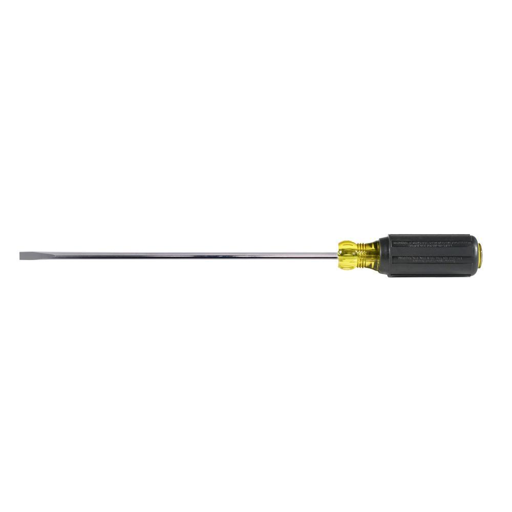 Klein® Cushion-Grip® 601-10 Screwdriver, 3/16 in Cabinet Point, Steel Shank, 13-3/4 in OAL, Acetate Handle, Polished Chrome, ANSI/ASME Specified