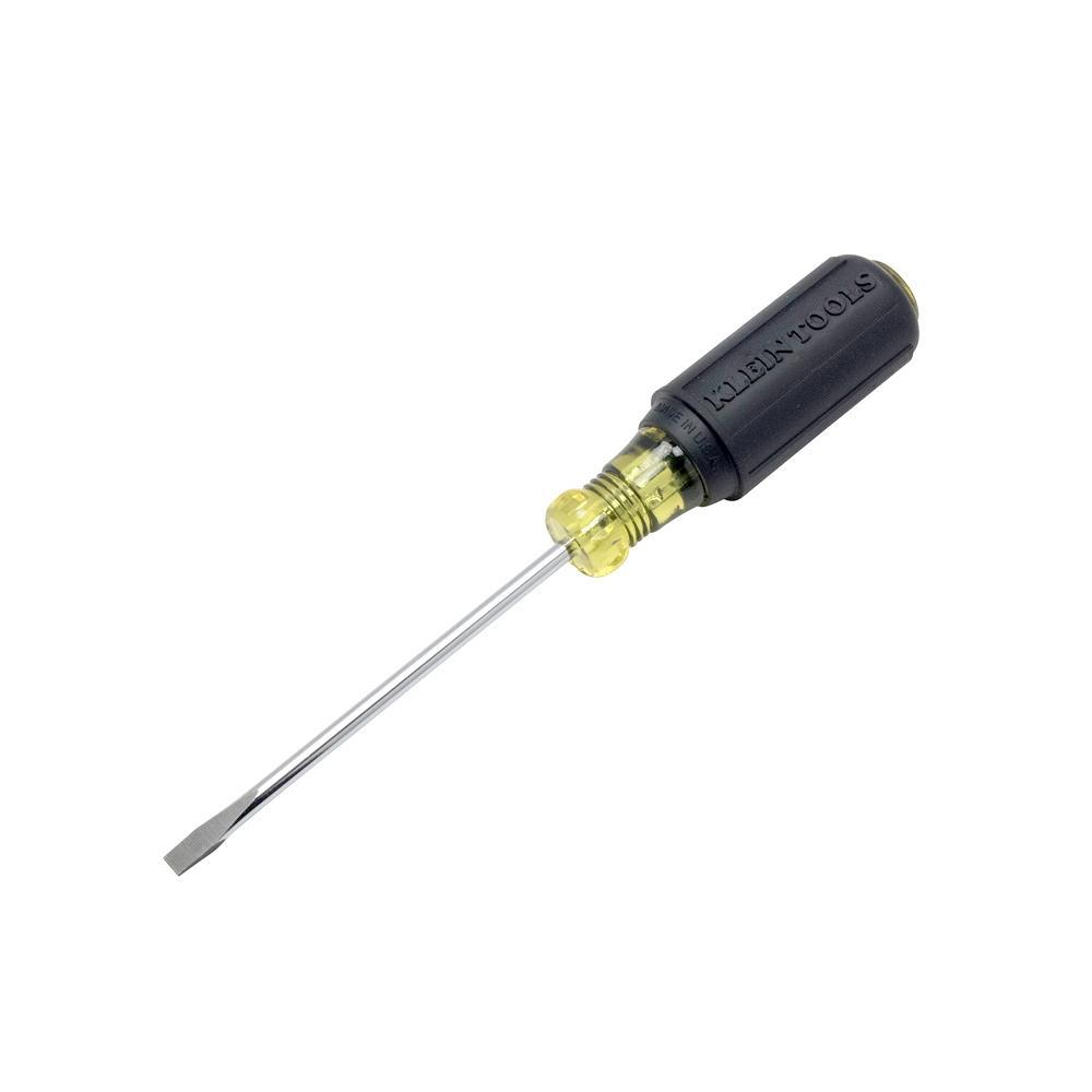 Klein's 3/16-Inch Cabinet Tip Screwdriver features a narrow cabinet tip to make tight spaces easily acceptable. This Cushion-Grip™ Handle Screwdriver offers the comfort and torque needed for all day work. Its Tip-Ident® quickly identifies screwdriver type and tip orientation, and its 4-Inch shaft is heat-treated for greater tool strength.