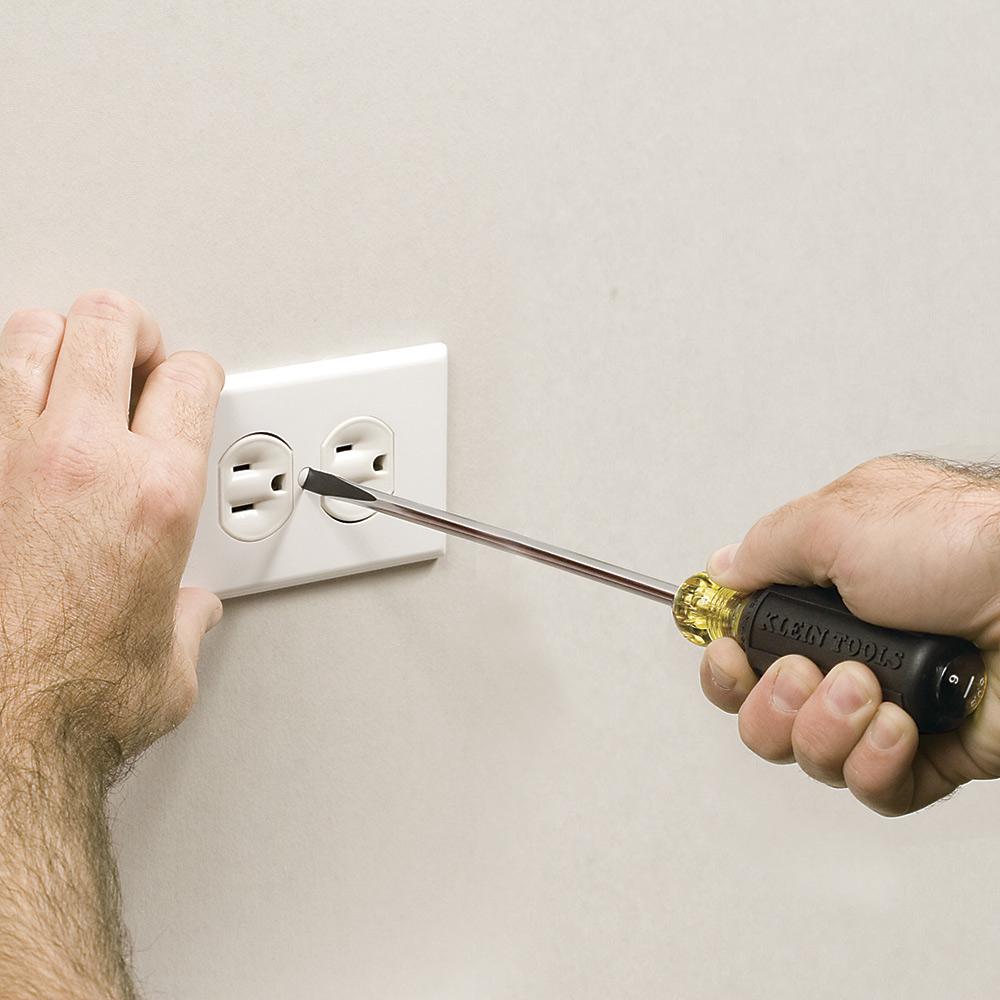 Klein's 3/16-Inch Cabinet Tip Screwdriver features a narrow cabinet tip to make tight spaces easily acceptable. This Cushion-Grip™ Handle Screwdriver offers the comfort and torque needed for all day work. Its Tip-Ident® quickly identifies screwdriver type and tip orientation, and its 6-Inch shaft is heat-treated for greater tool strength.
