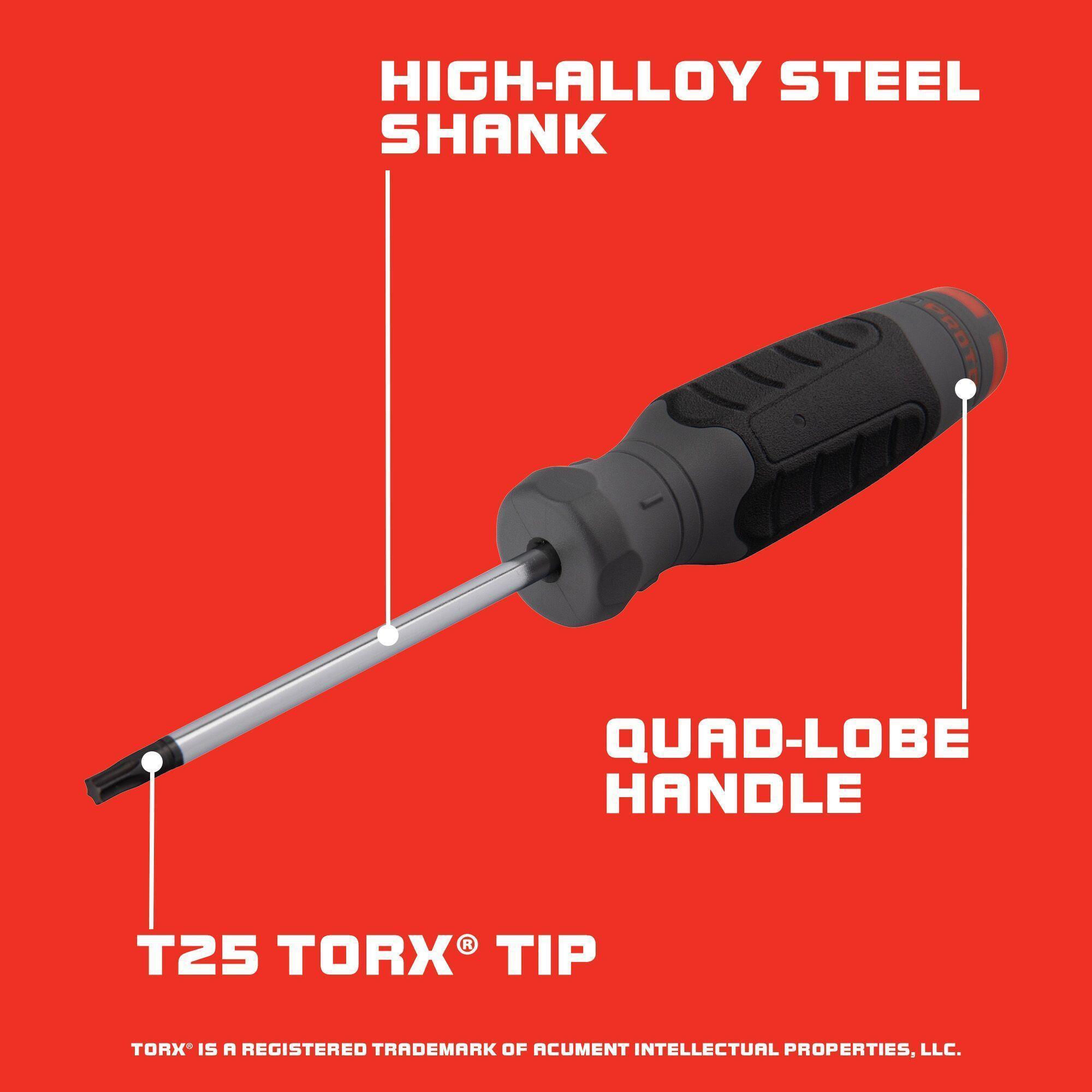 Proto® JT25314R Screwdriver, T25 Star/Torx® Point, Alloy Steel Shank, 7 in OAL, Black Oxide/Polished Chrome, ASME B107.15