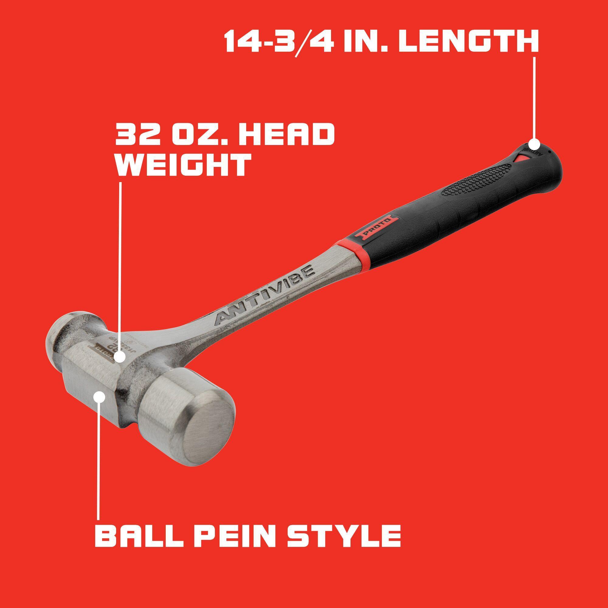 Proto® J1332AVP Ball Pein Hammer, 14-3/4 in OAL, 32 oz Steel Head, Steel Handle