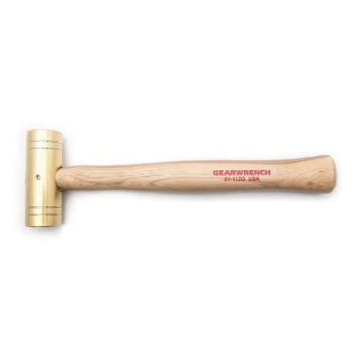 GEARWRENCH® 81-112G Soft Face Hammer, 13 in OAL, 1-1/2 in Dia Flat/Striking Face, 2 lb Brass Head, Hickory Wood Handle