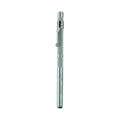 - Powerful permanent magnet in a knurled aluminum holder with handy pocket clip