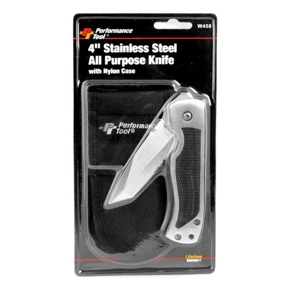 Performance Tool™ W458 Pocket and Folding Knife, 4 in L Blade, Folding Stainless Steel Blade, In-Handle Locking Opening
