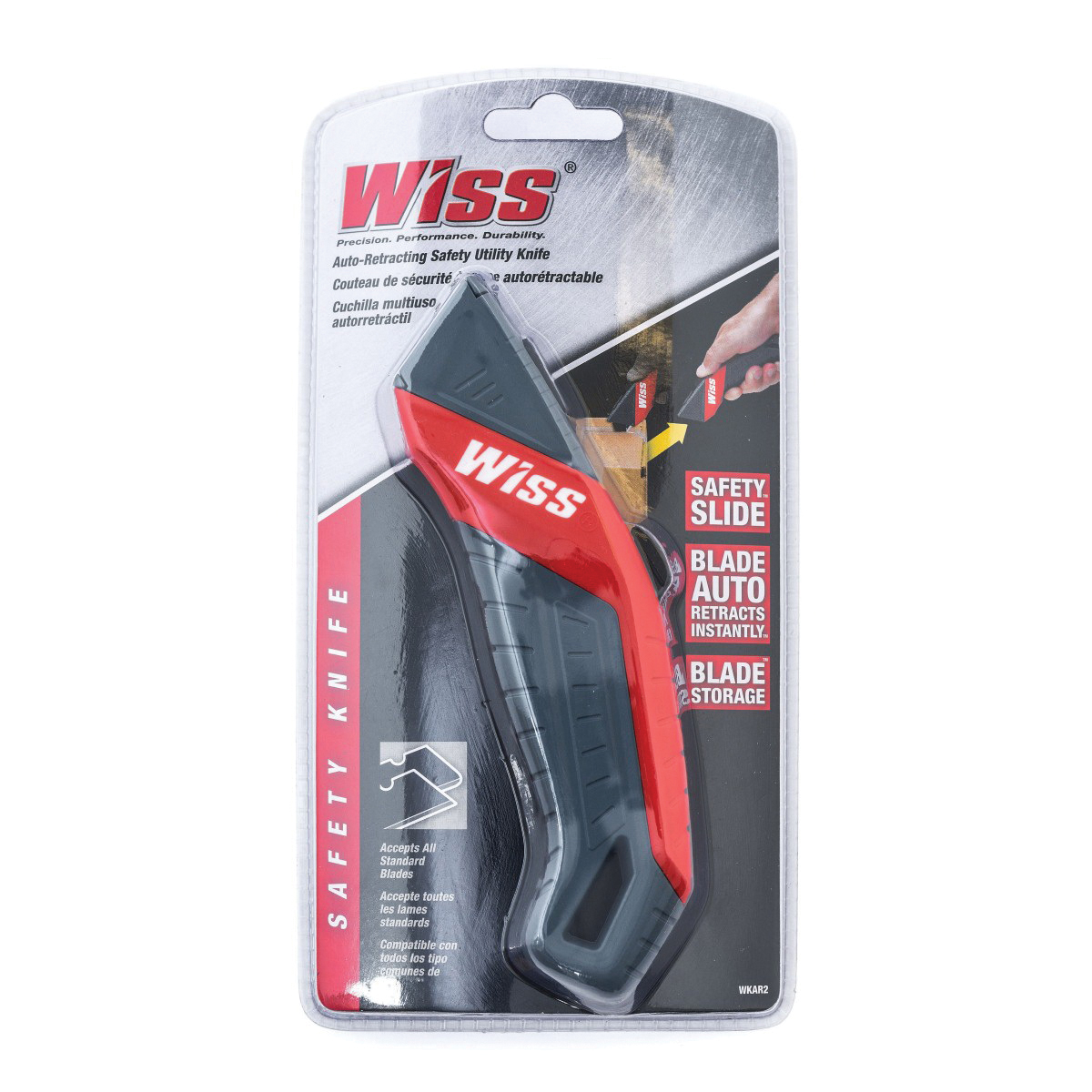 The Crescent®Auto-Retracting Safety Utility Knife retracts automatically when cut is complete, even if slider is in forward position. This feature cannot be overridden under normal use, reducing workplace injuries. This knife accepts all standard utility knife blades with a quick blade change, and comes with three black-oxide coated blades.