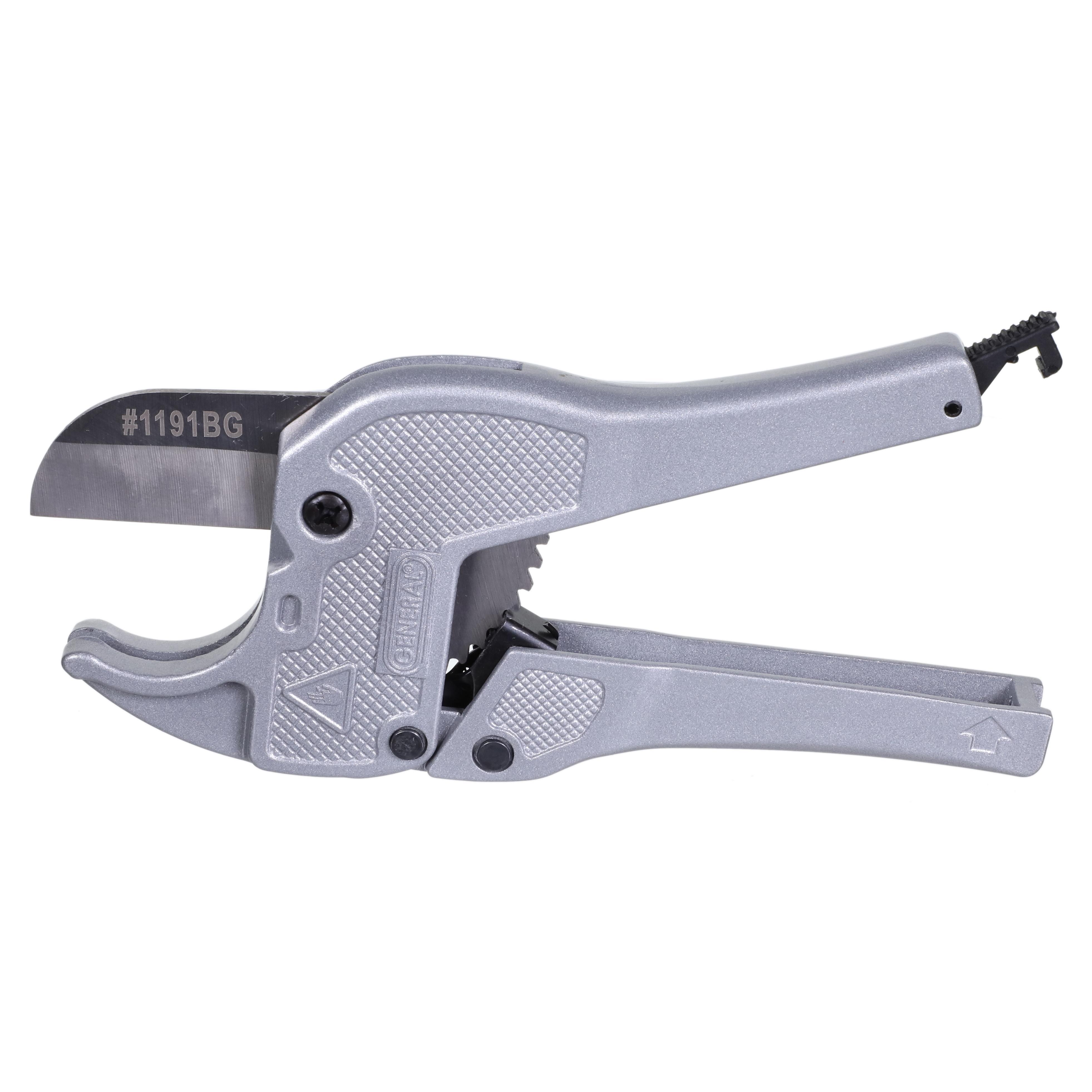 The ratchet system holds the blade in place while you adjust your grip to increase the pressure. The high carbon steel blade maintains sharpness and resists chipping. These cutters can be used for cutting PVC, CPVC, Polyethylene, PEX and ABS tubing. The cutters have a quick-blade reset and can be used as a one handed operation. With the handle locking strap for safe storage, the easy replacing blade feature and the ergonomically designed handle, these cutters are a perfect addition to any tool box.